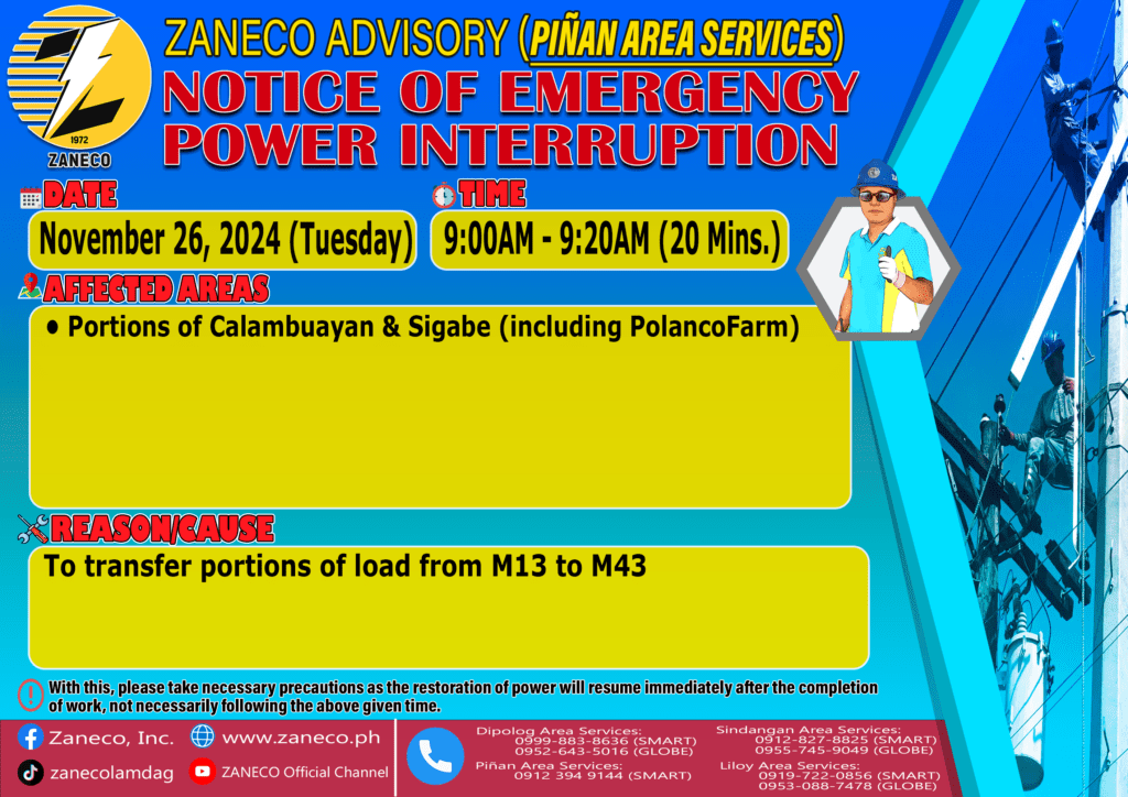 Notice of Emergency & Scheduled Power Interruption PAS – November 24, 26 & 27, 2024