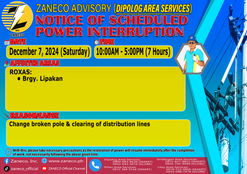 Notice of Scheduled Power Interruption DAS – December 7, 2024