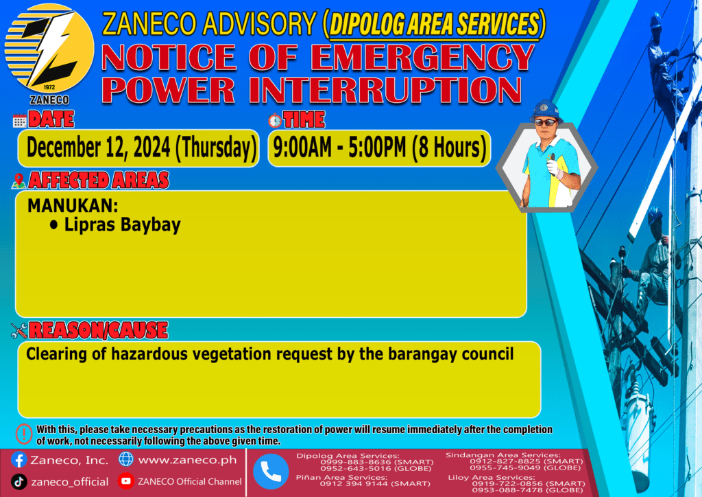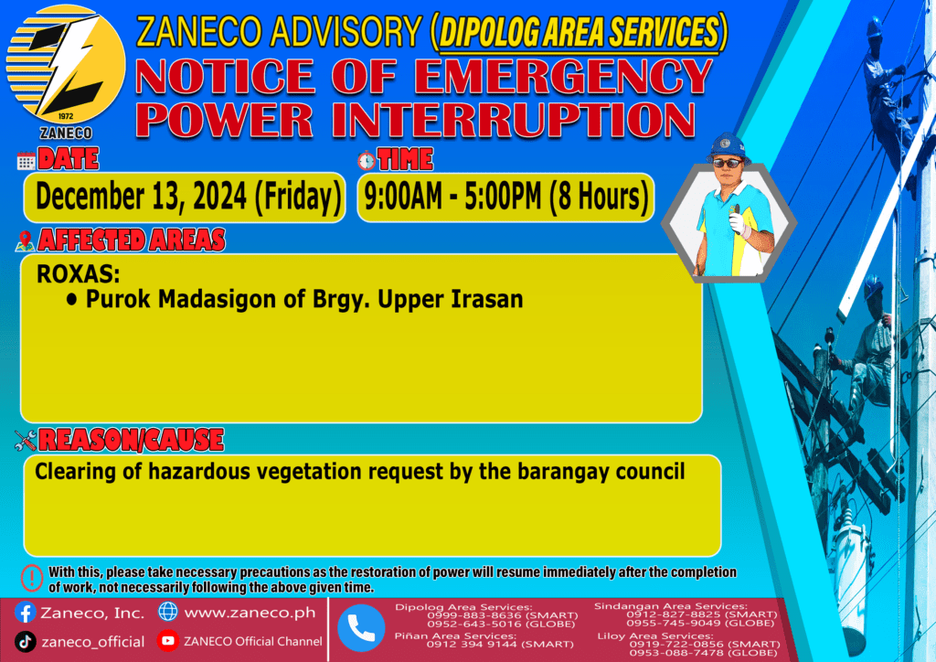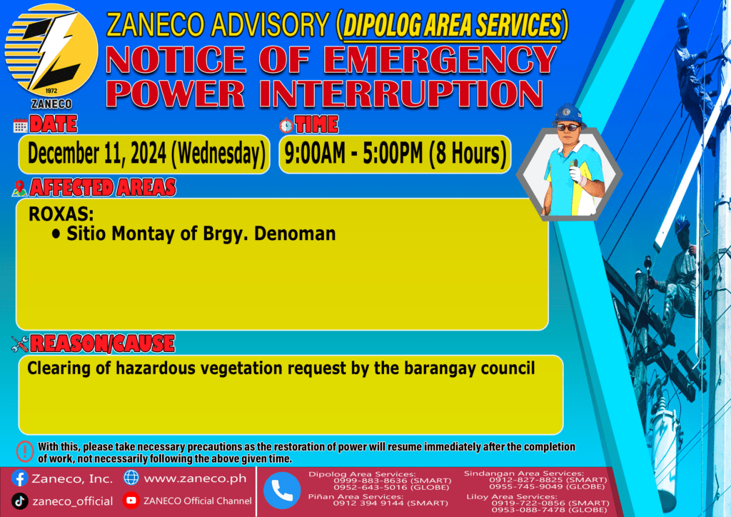 Notice of Emergency Scheduled Power Interruption DAS – 11, 12 & 13, 2024