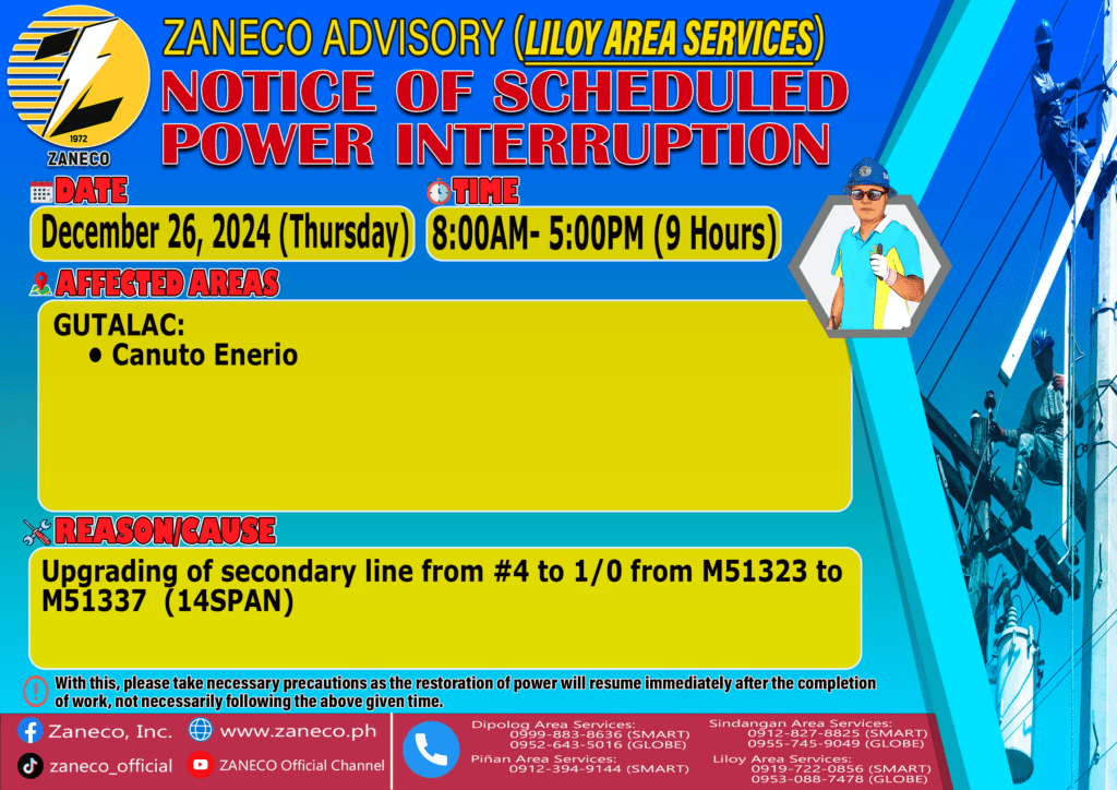 Notice of Scheduled Power Interruption LAS – December 26, 2024