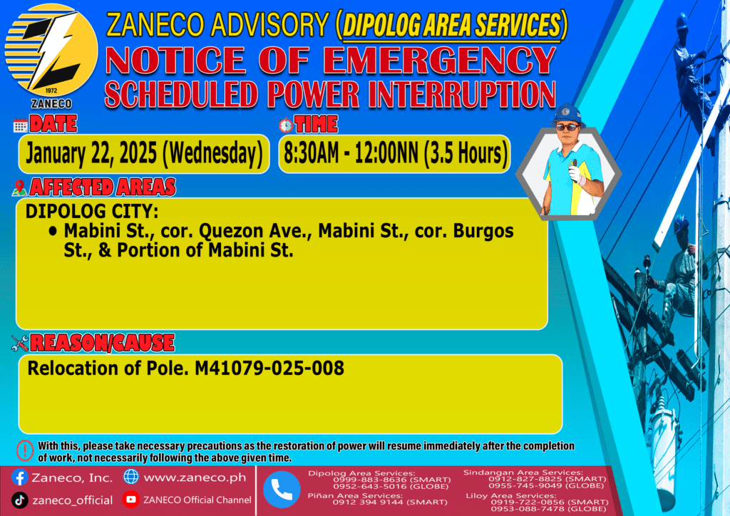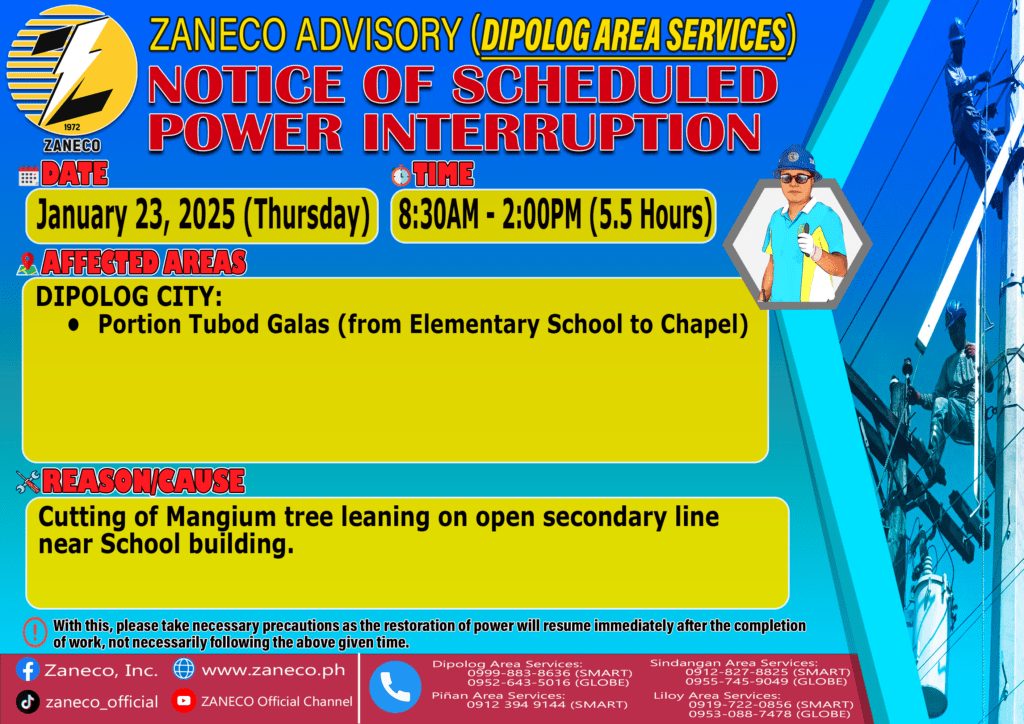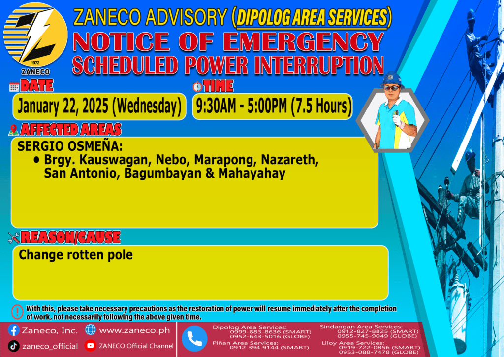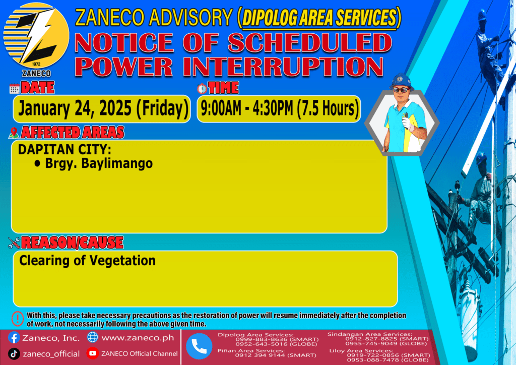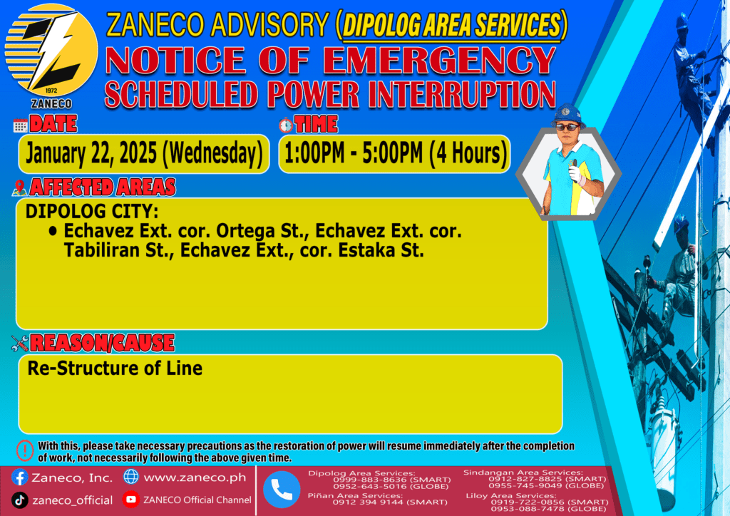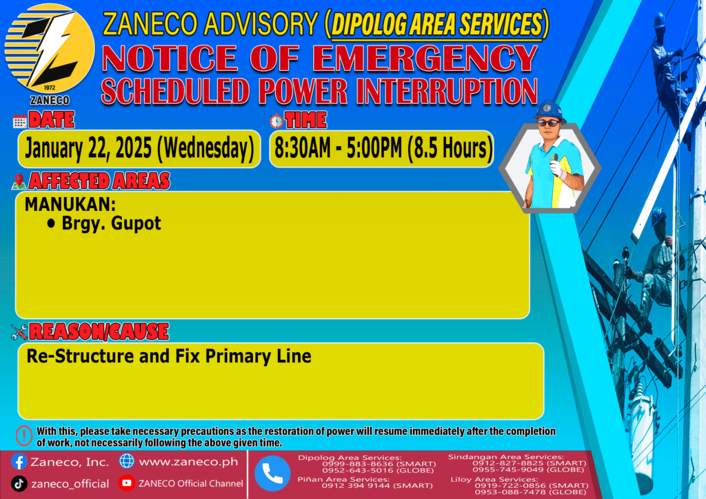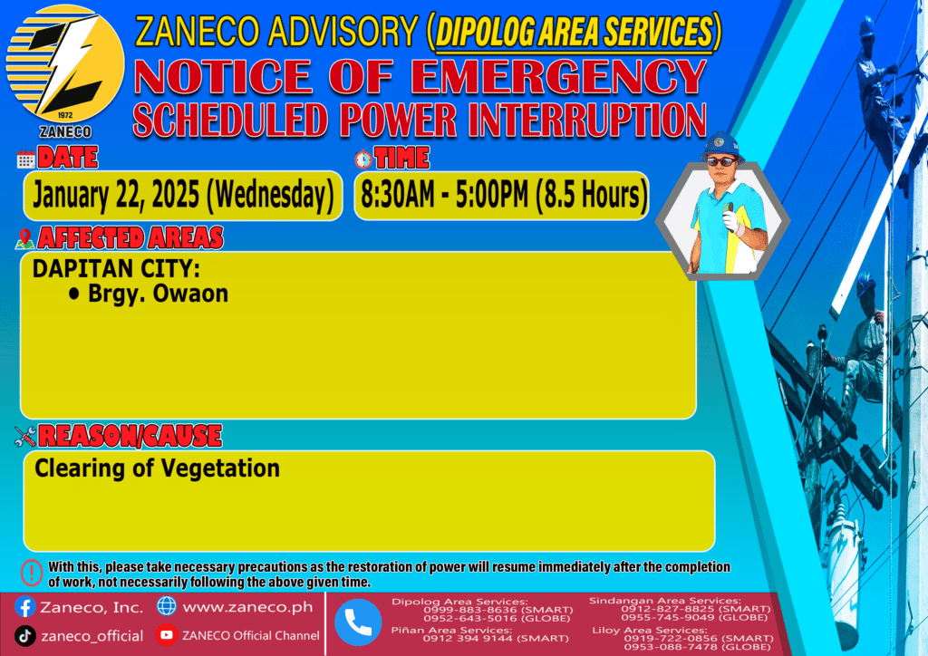 Notice of Emergency and Scheduled Power Interruption DAS – January 22, 23 & 24, 2025 January 21, 2025 by Jennho Sy