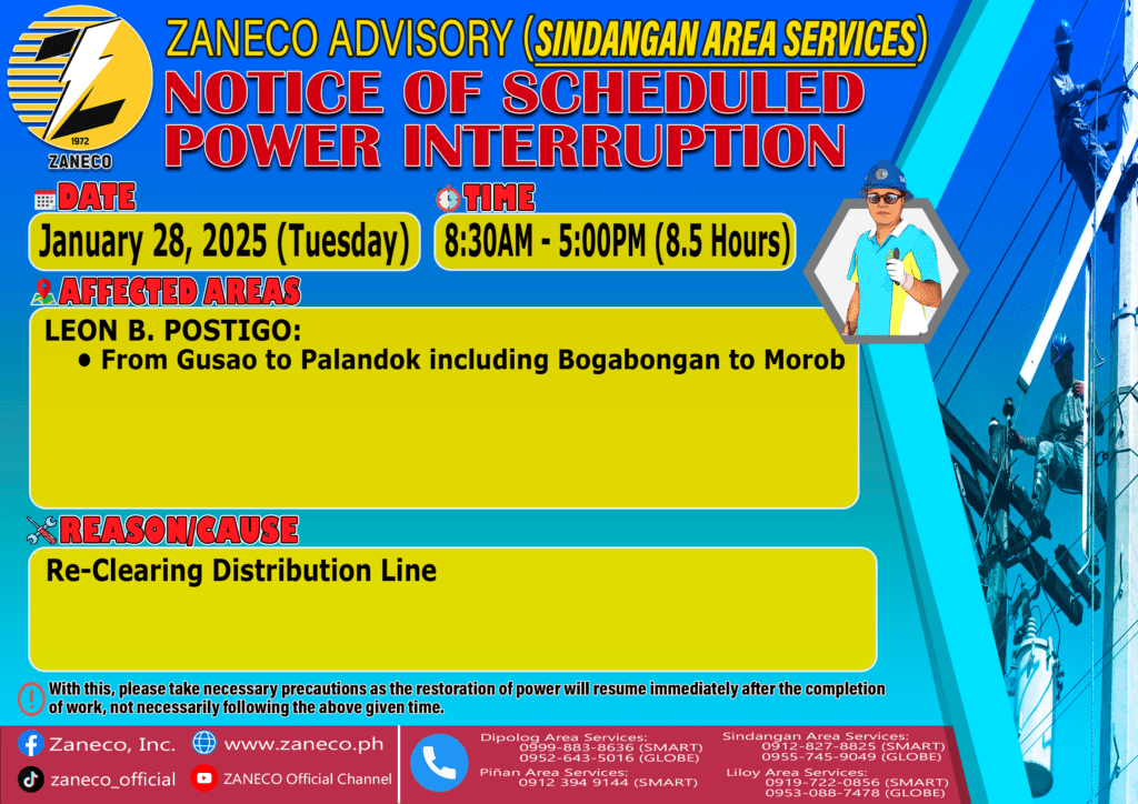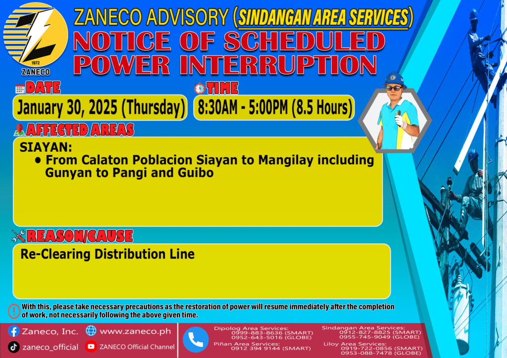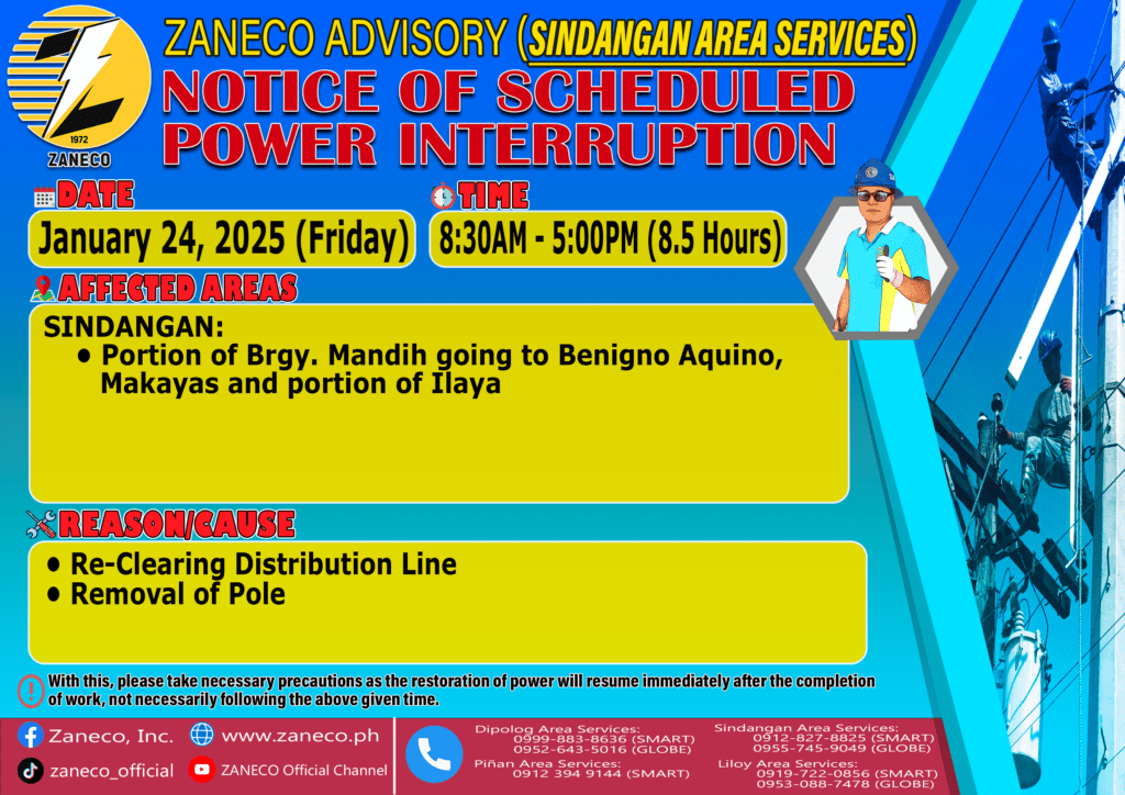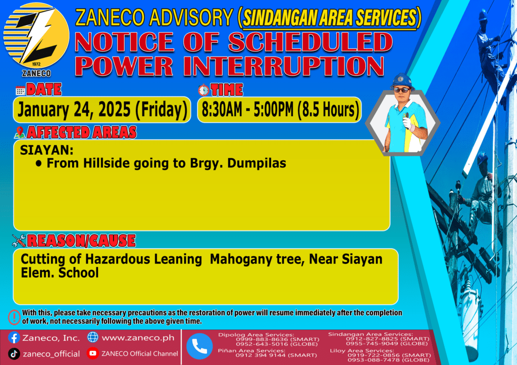 Notice of Scheduled Power Interruption SAS – January 24, 27, 28, 30 & 31, 2025