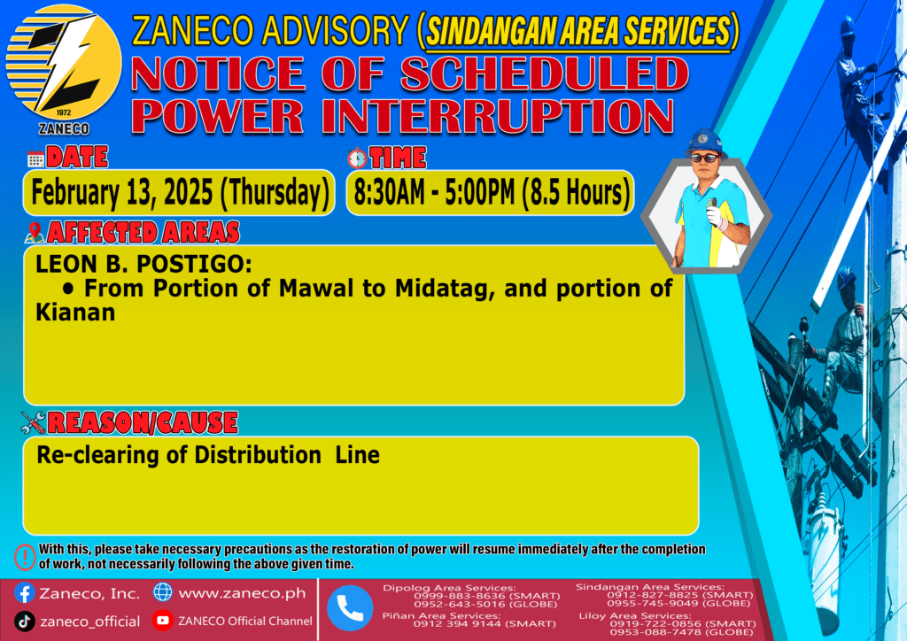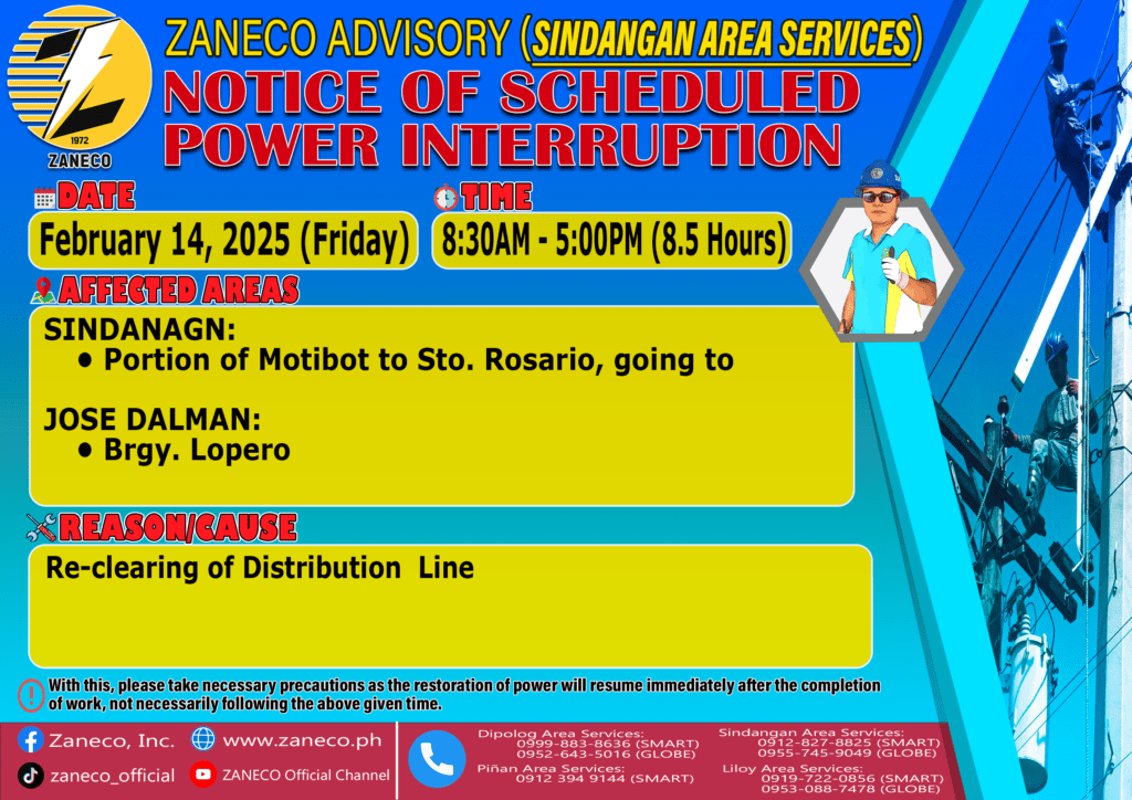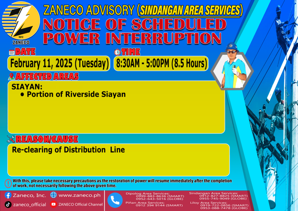 Notice of Scheduled Power Interruption SAS – February 10, 11, 13 & 14, 2025 February 7, 2025 by Jennho Sy