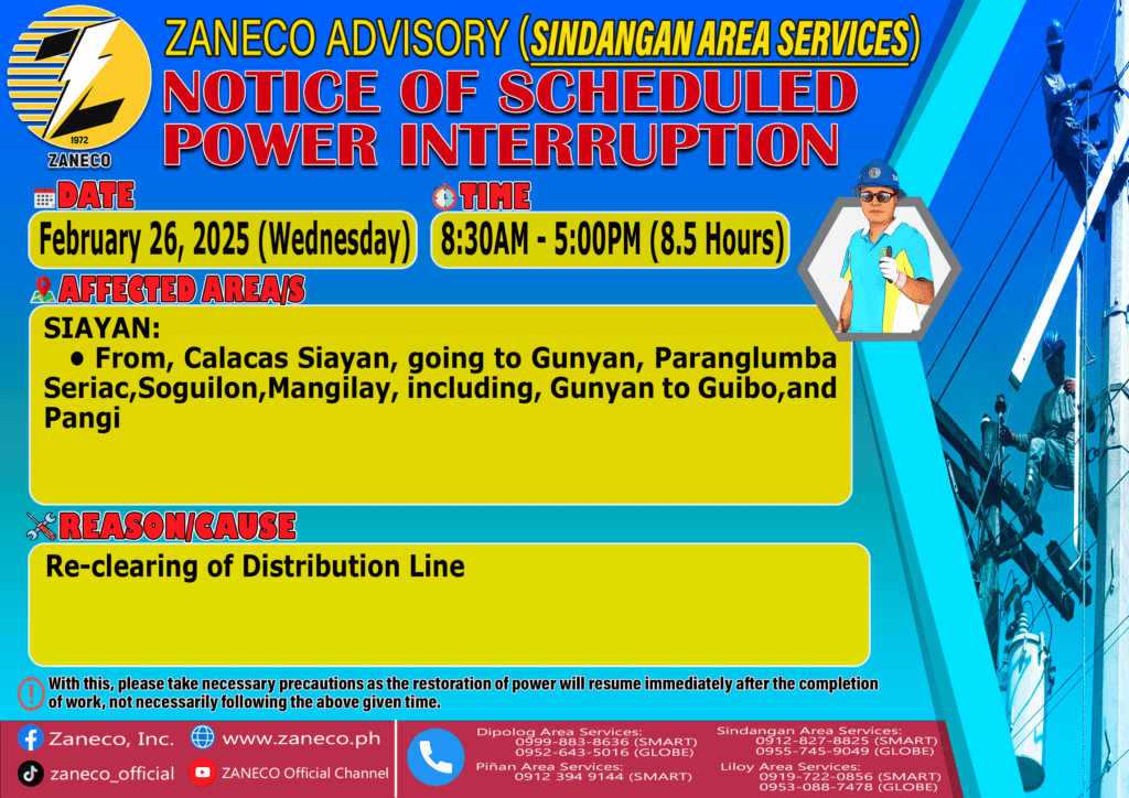 Notice of Scheduled Power Interruption SAS February 25, 26, 27 & 28, 2025 February 18, 2025 by Jennho Sy