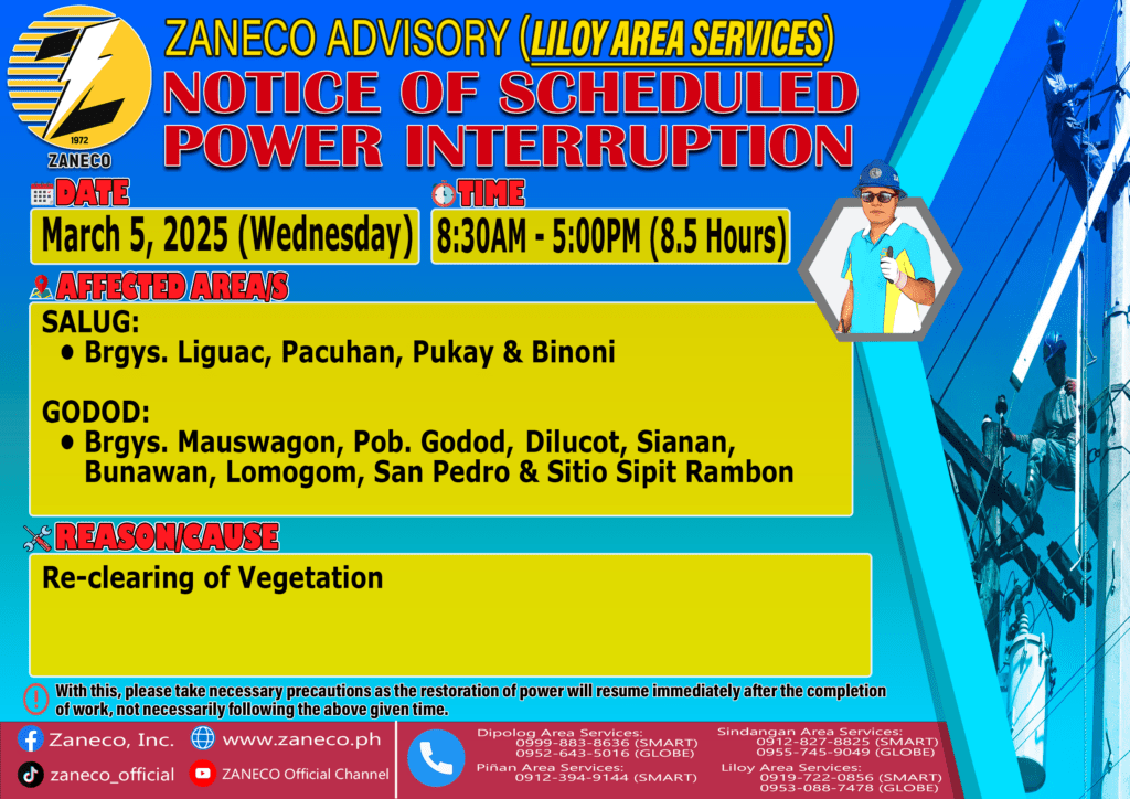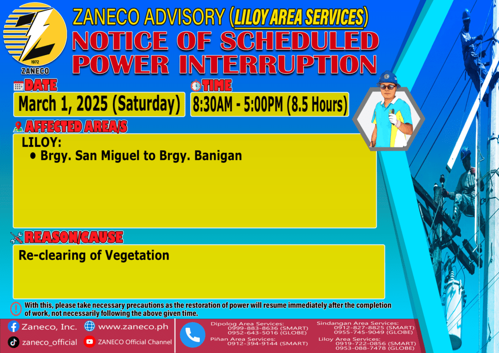 Notice of Scheduled Power Interruption LAS – February 26 & 28 and March 1, 5, 6, 7 & 8, 2025 February 25, 2025 by Jennho Sy