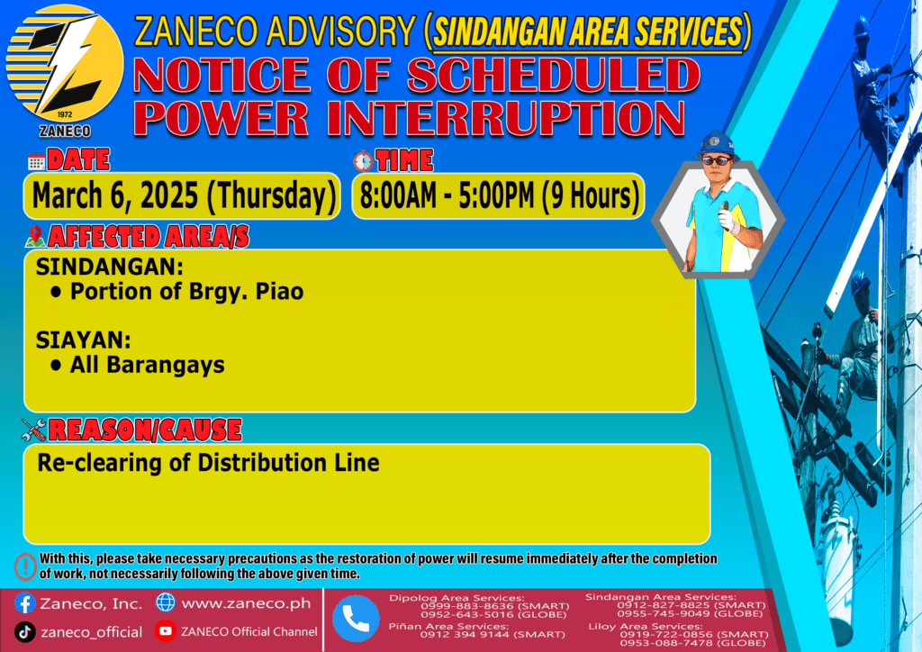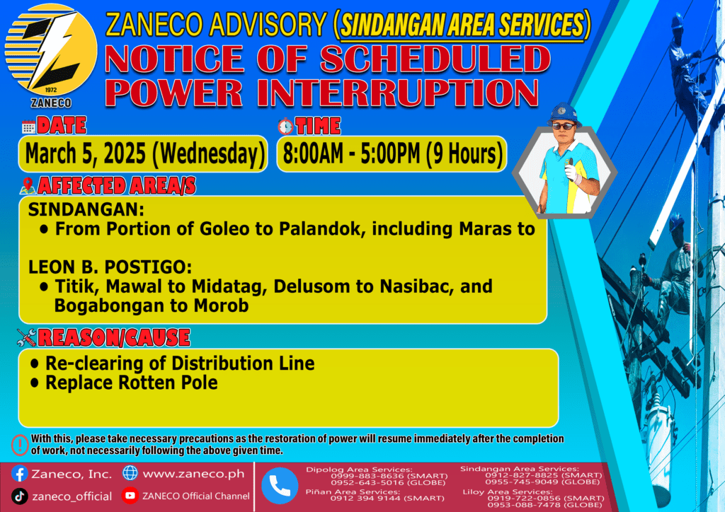 Notice of Scheduled Power Interruption SAS – March 3, 4, 5 ,6 & 7, 2025