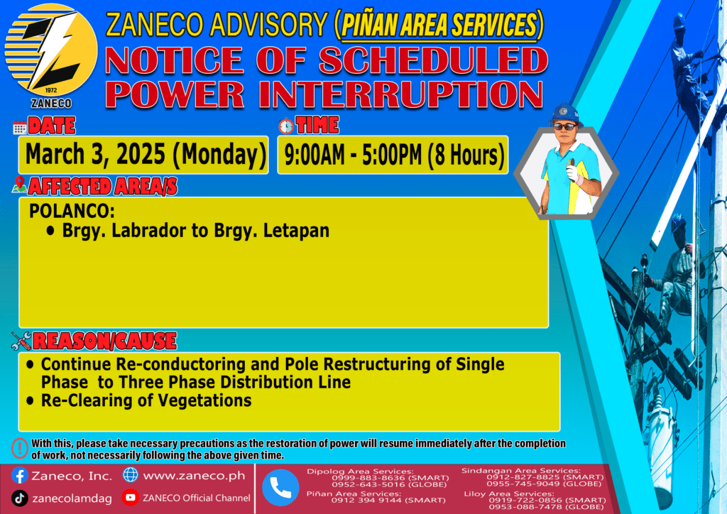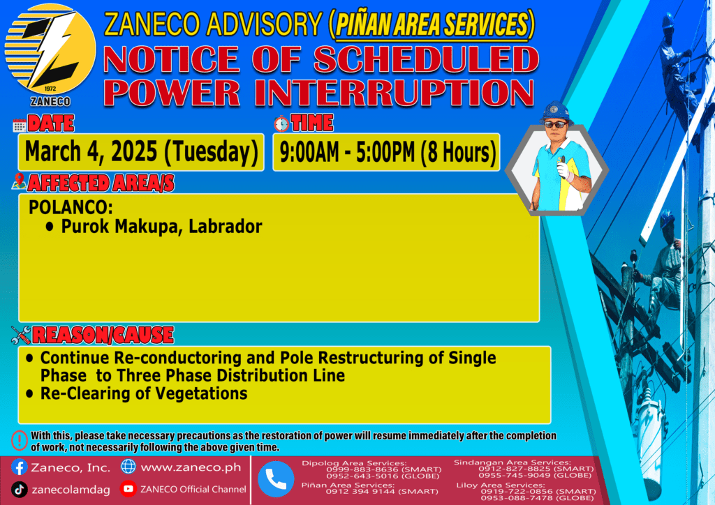 Notice of Scheduled Power Interruption PAS – March 3, 4 ,5 & 6, 2025