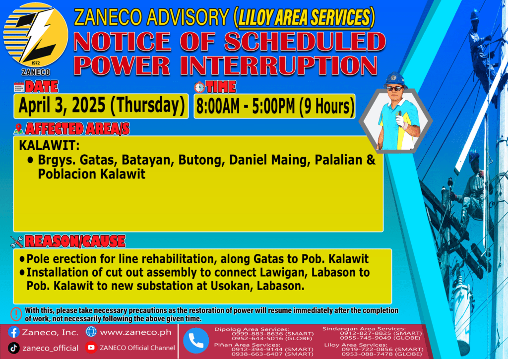 Notice of Scheduled Power Interruption LAS – April 3 & 6, 2025