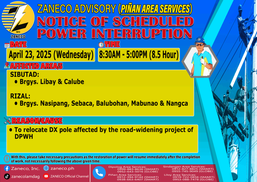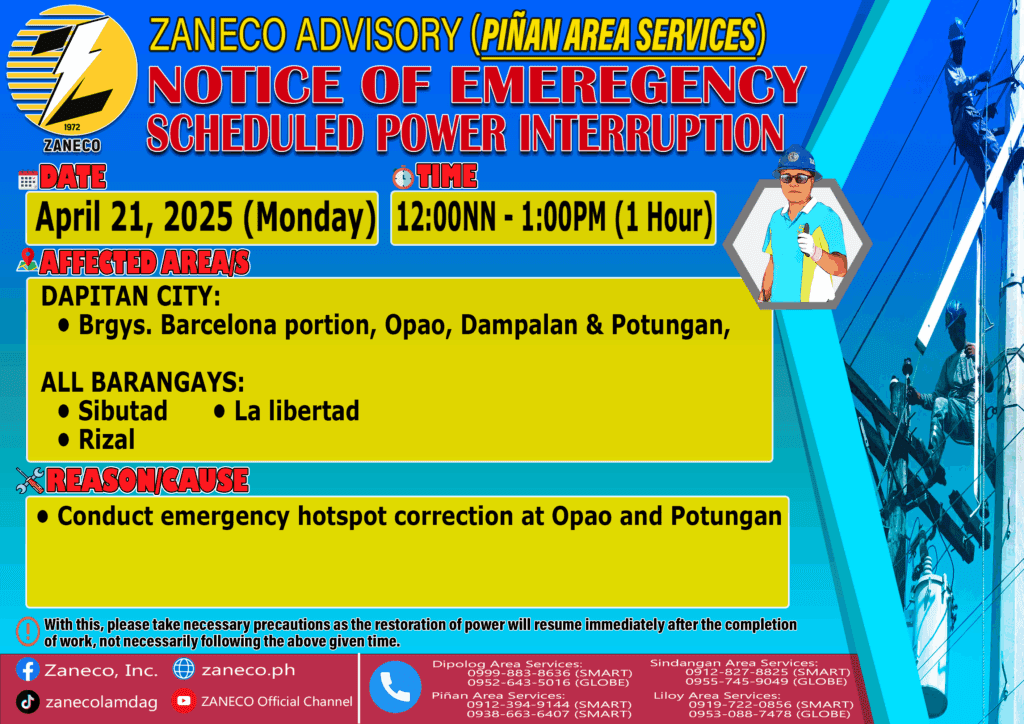 Notice of Emergency and Scheduled Power Interruption PAS – April 21, 23 & 25, 2025