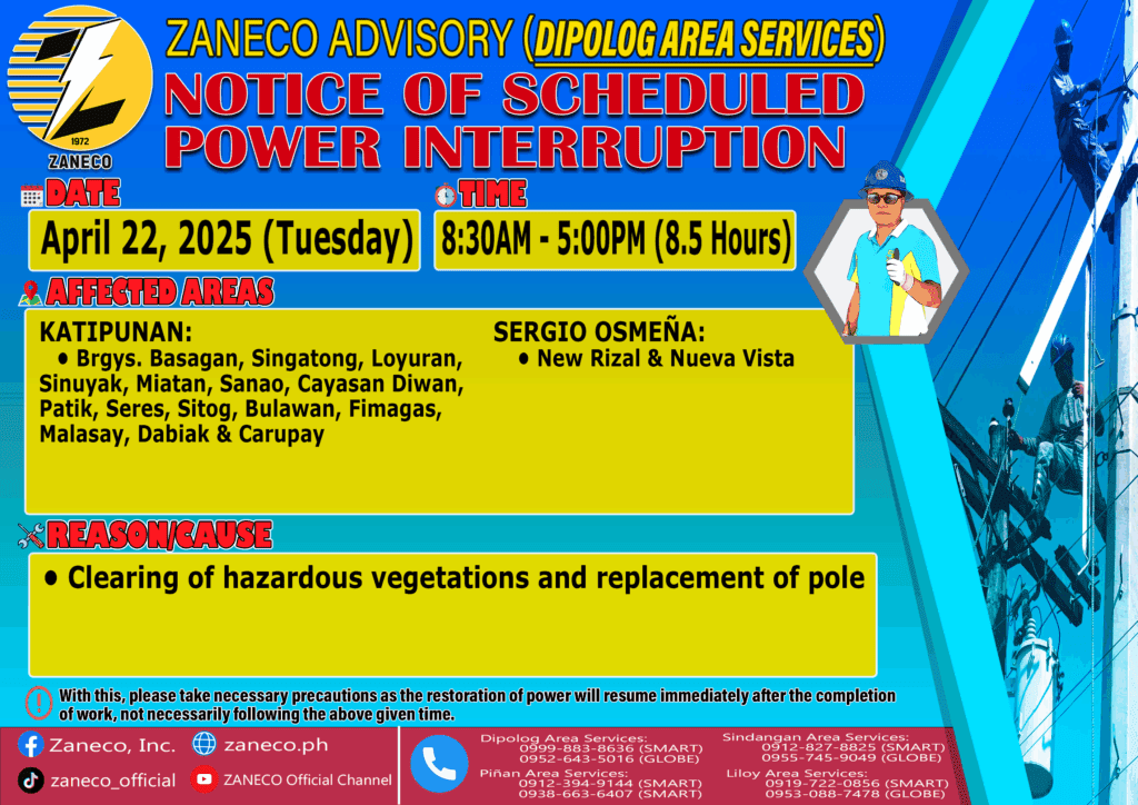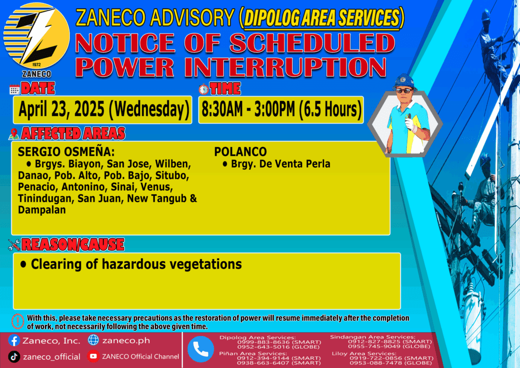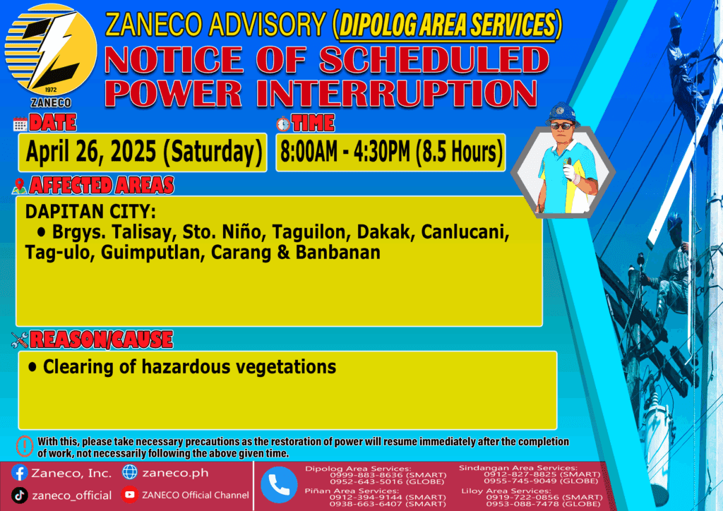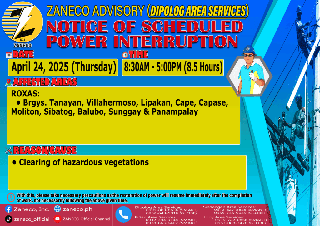 Notice of Scheduled Power Interruption DAS – April 22, 23, 24, 25 & 26, 2025 April 21, 2025 by Jennho Sy