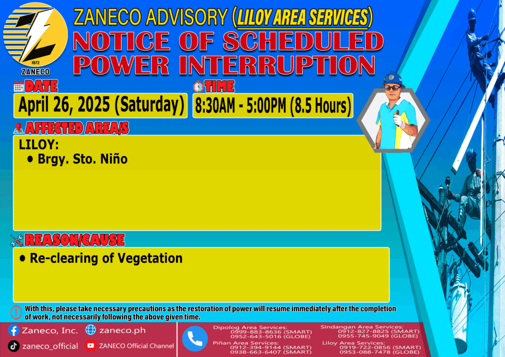 Notice of Scheduled Power Interruption PAS – April 26, 2025