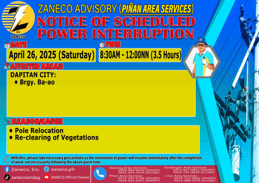 Notice of Scheduled Power Interruption PAS – April 26, 2025