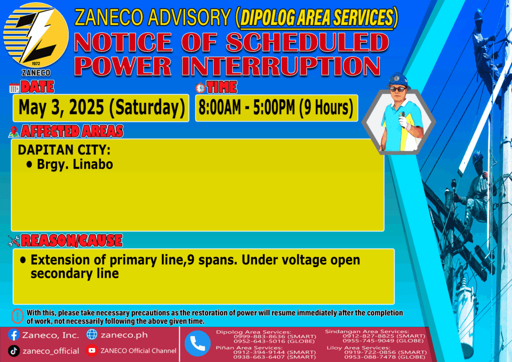 Notice of Scheduled Power Interruption SAS – May 3, 2025
