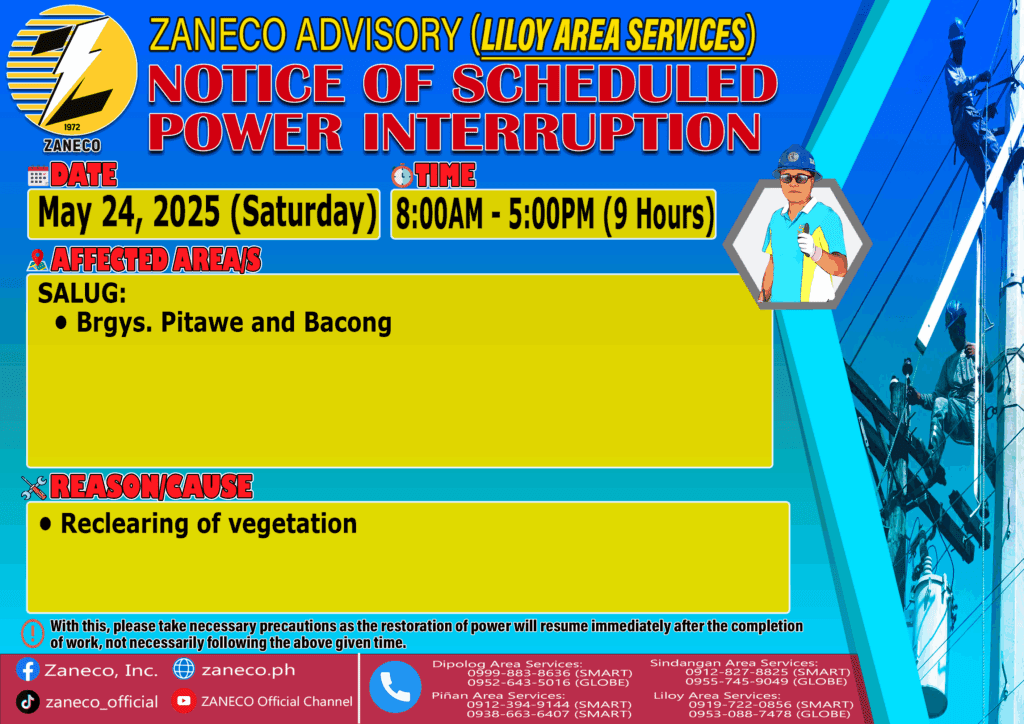 Notice of Scheduled Power Interruption LAS – May 24, 27, 28 & 29, 2025