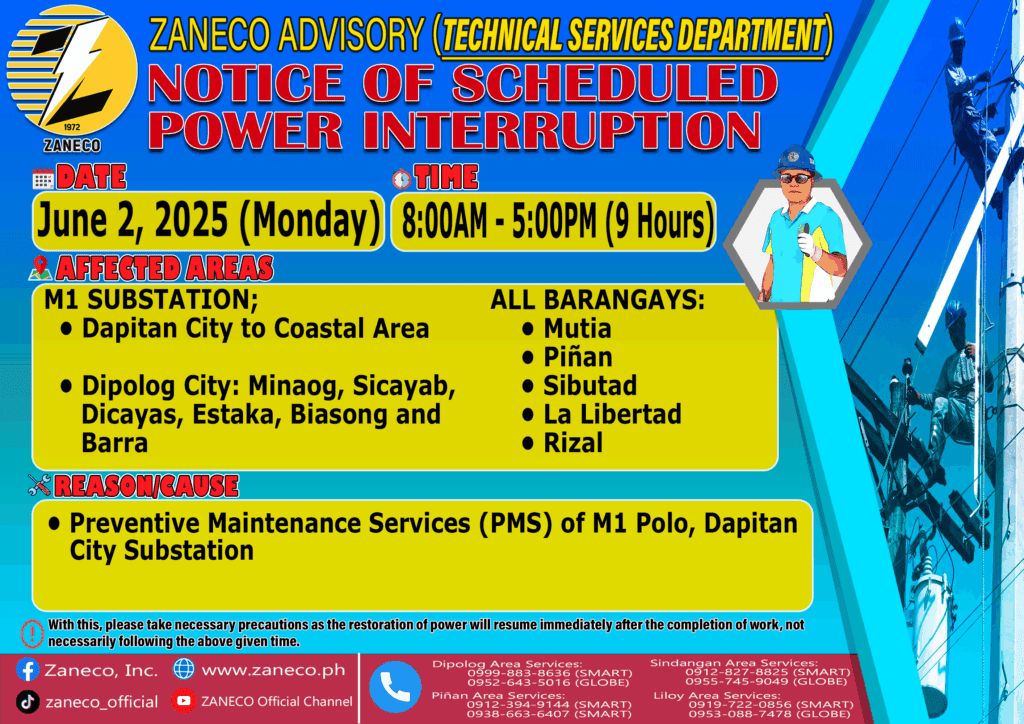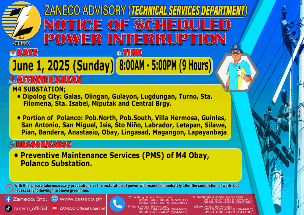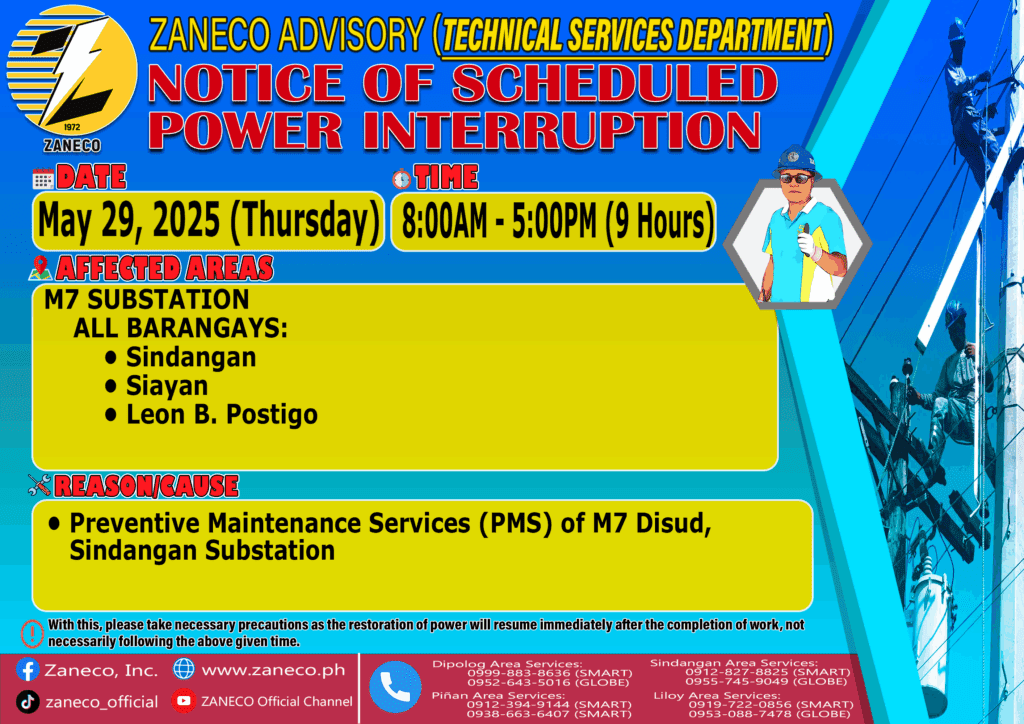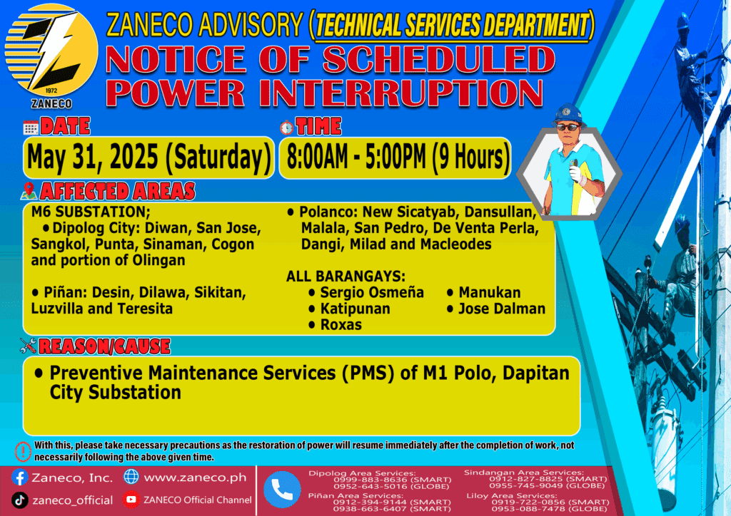 Notice of Scheduled Power Interruption TSD – May 29, 31, June 1 & 2, 2025 May 23, 2025May 23, 2025 by Jennho Sy