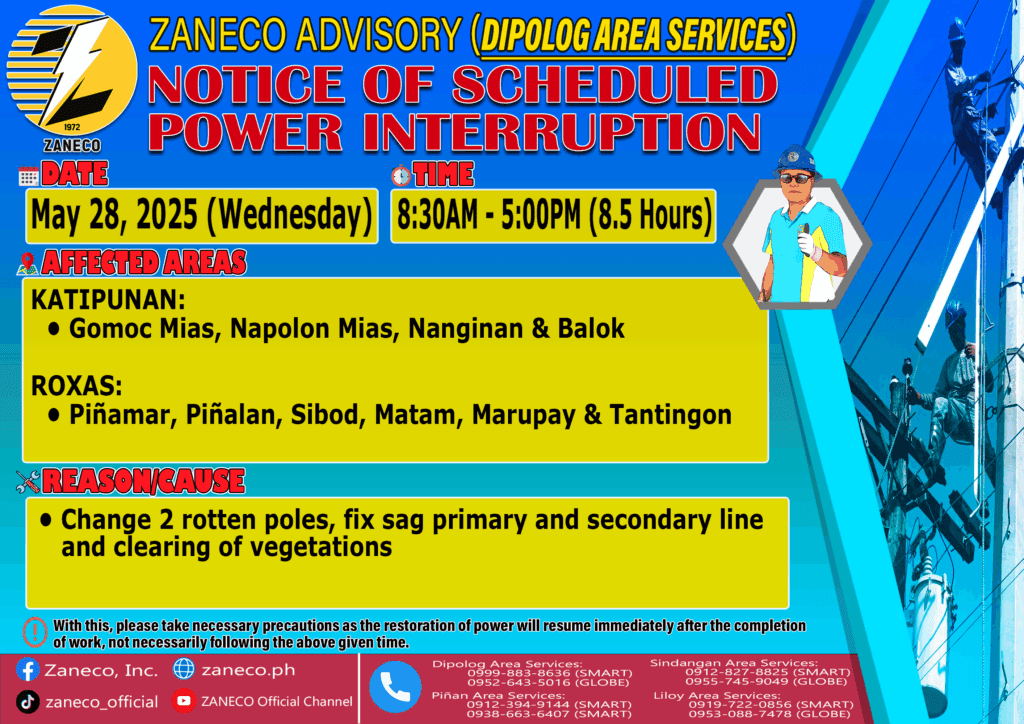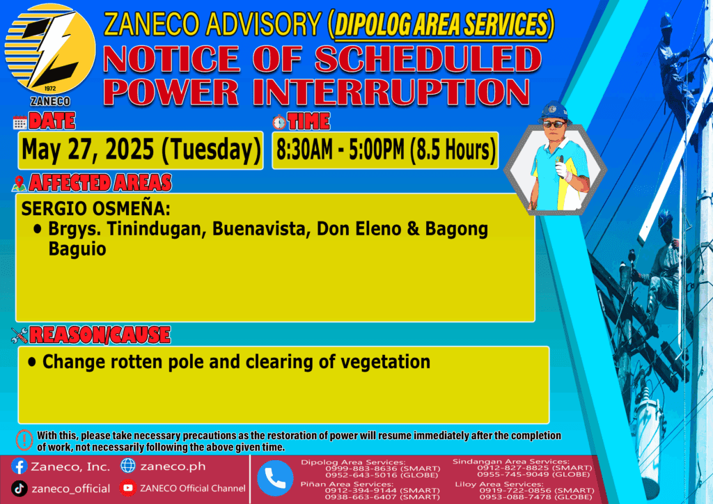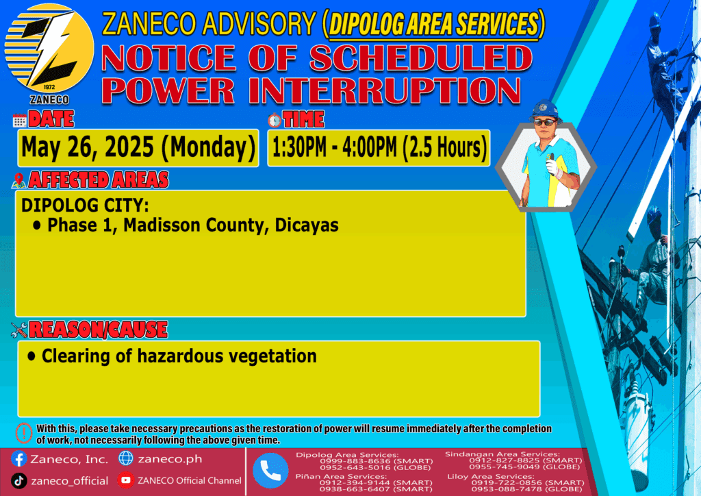 Notice of Scheduled Power Interruption TSD – May 29, 31, June 1 & 2, 2025