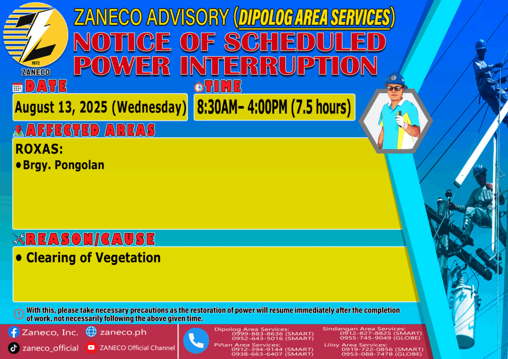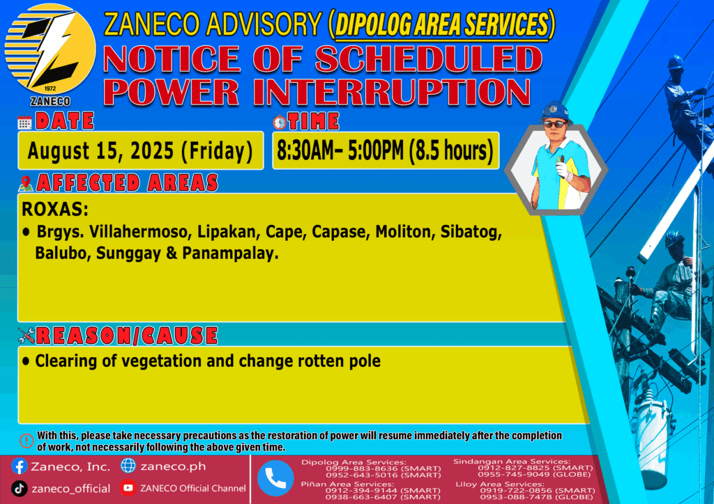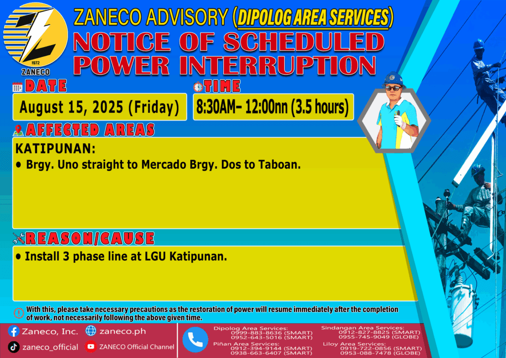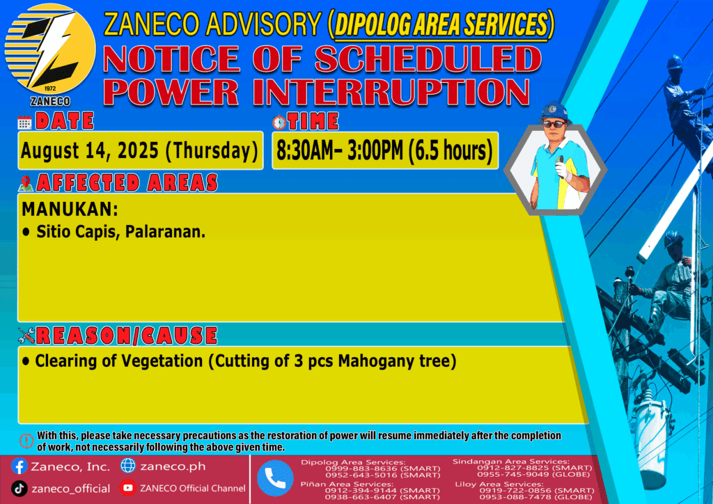 Notice of Scheduled Power Interruption TSD – August 12, 14 & 16, 2025