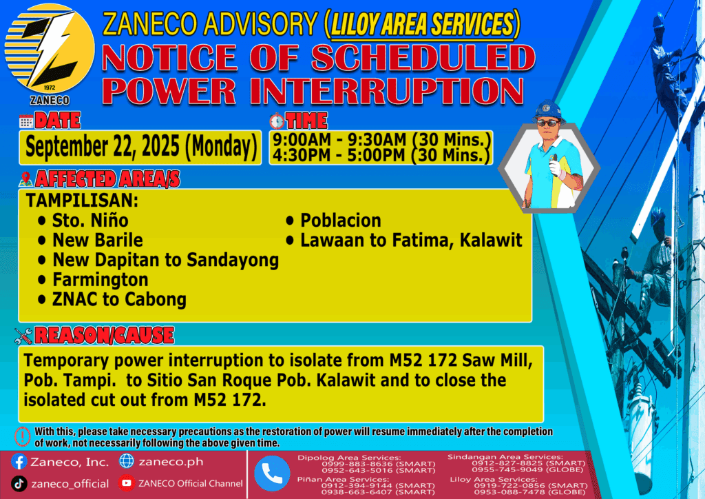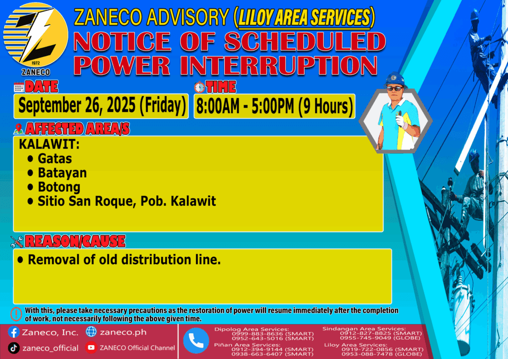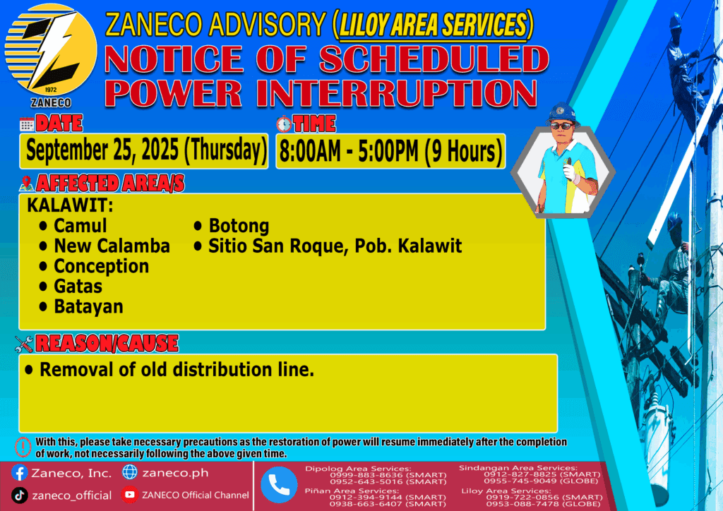 Notice of Scheduled Power Interruption LAS – September 22, 23, 24, 25 & 26, 2025