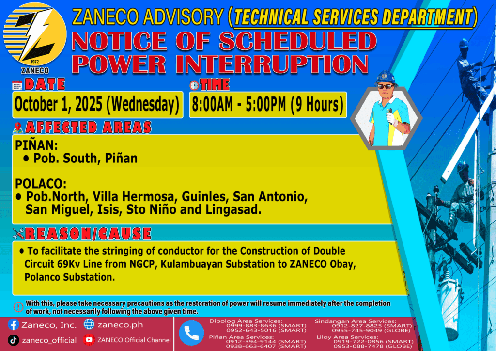 Notice of Scheduled Power Interruption TSD – October 1 & 3, 2025