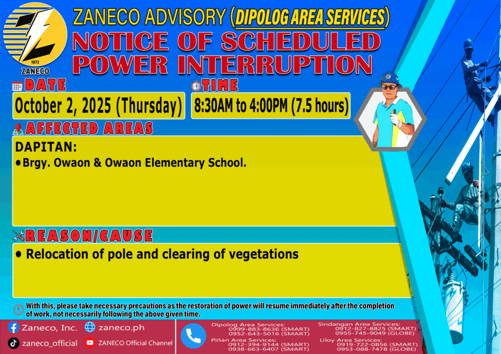 Notice of Scheduled Power Interruption DAS – October 1,2 & 3, 2025 September 29, 2025 by roiden candia