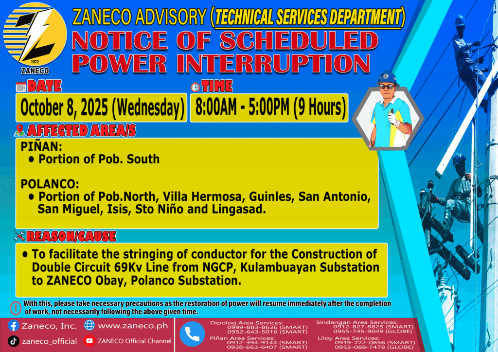 Notice of Scheduled Power Interruption TSD – October 8 & 10, 2025