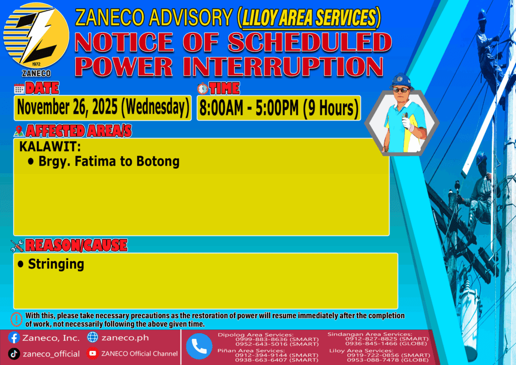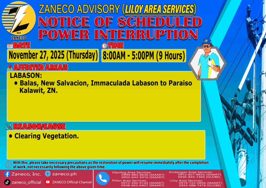 Notice of Scheduled Power Interruption LAS – November 26 27 & 28, 2025 November 24, 2025 by roiden candia