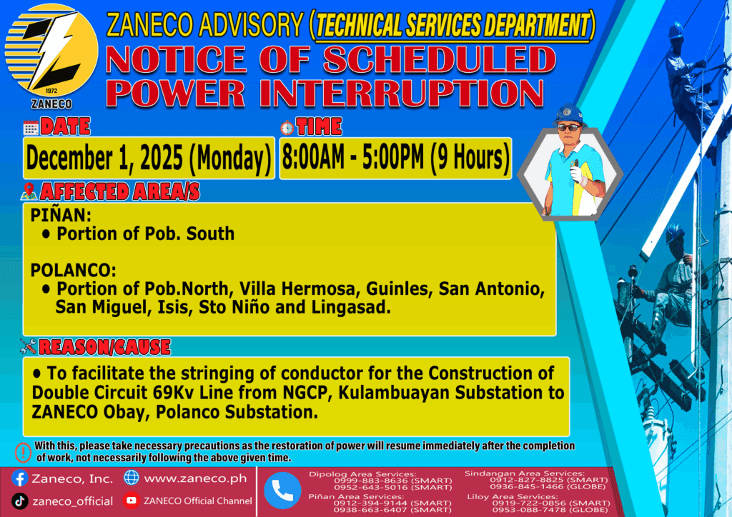 Notice of Scheduled Power Interruption TSD – December 1, 2025