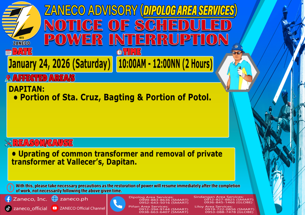 Notice of Emergency Scheduled Power Interruption DAS – January 24, 2026 January 20, 2026 by roiden candia