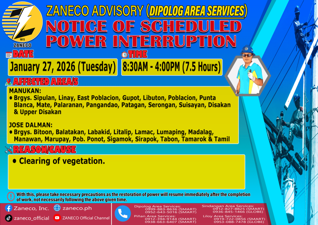Notice of Scheduled Power Interruption SAS – January 27, 28, 29 & 30, 2026