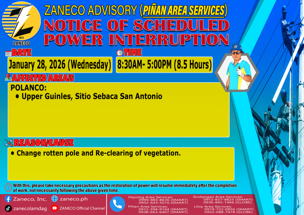 Select Notice of Scheduled Power Interruption PAS – January 27 & 28, 2026 January 26, 2026 by roiden candia