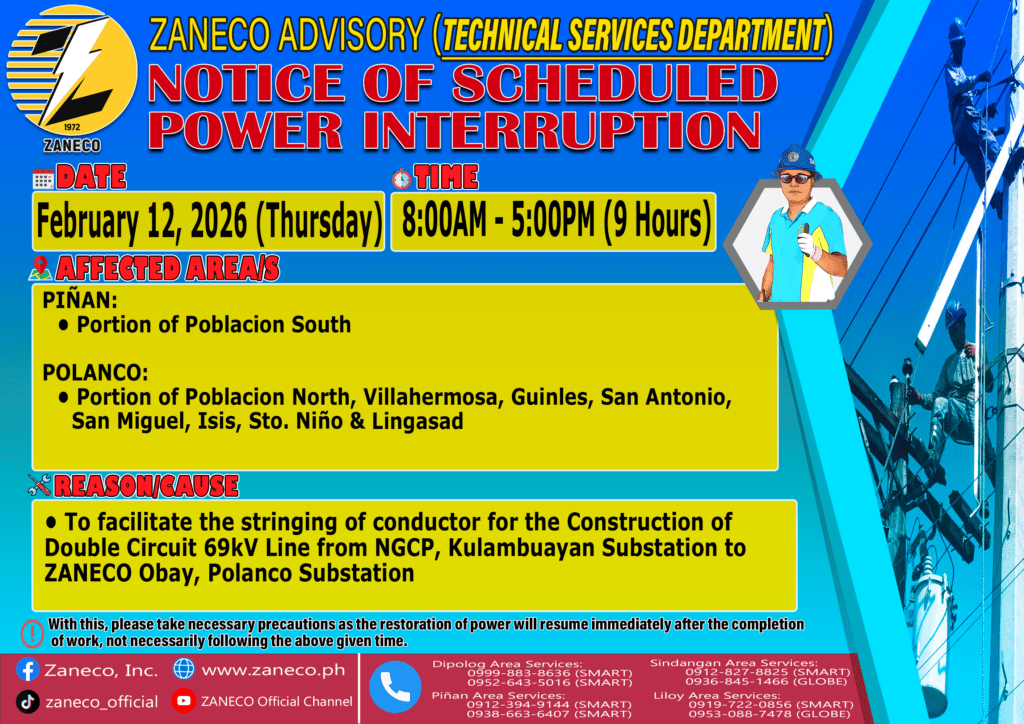 Notice of Scheduled Power Interruption TSD – February 12, 2026 February 11, 2026February 11, 2026 by Jennho Sy