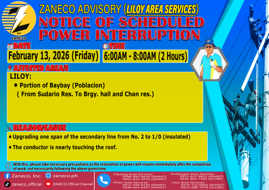 Notice of Scheduled Power Interruption SAS – February 13, 2026.