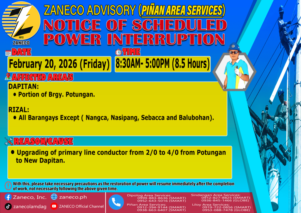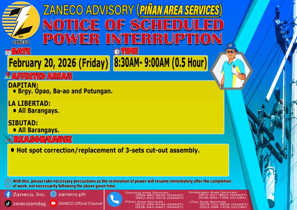 Notice of Scheduled Power Interruption PAS – February 20, 2026.