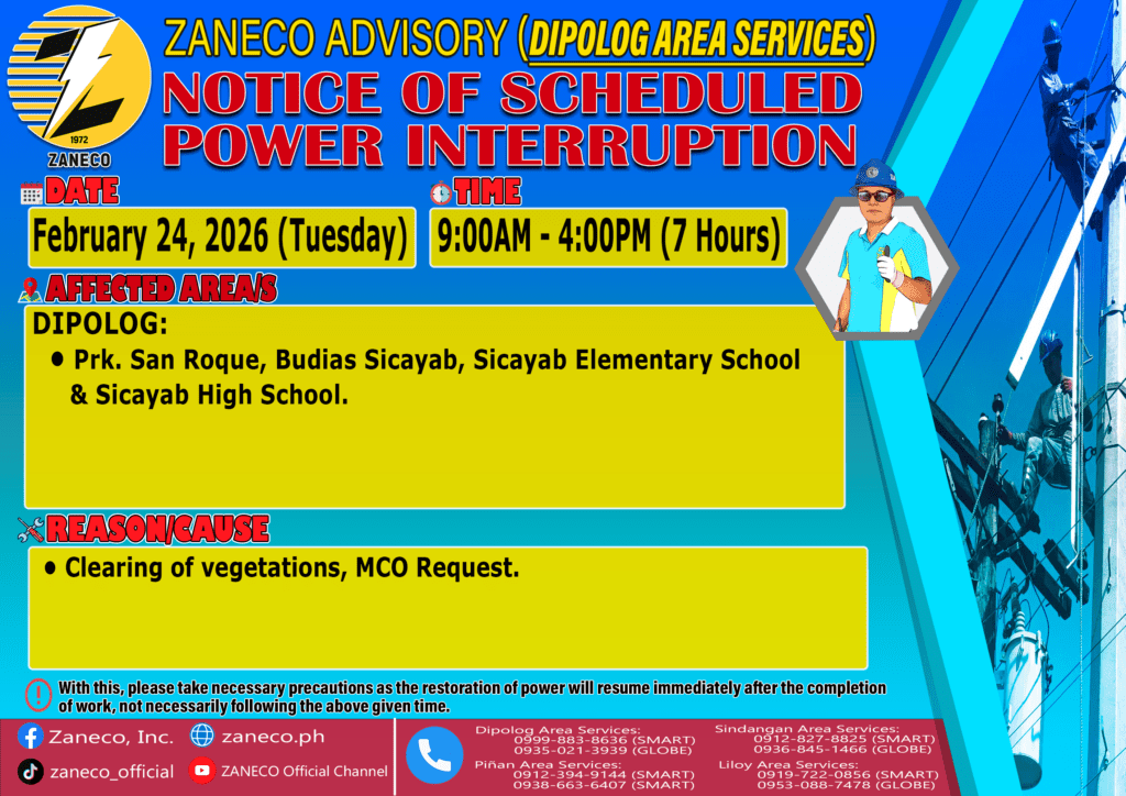 Notice of Scheduled Power Interruption PAS – February 20, 2026.