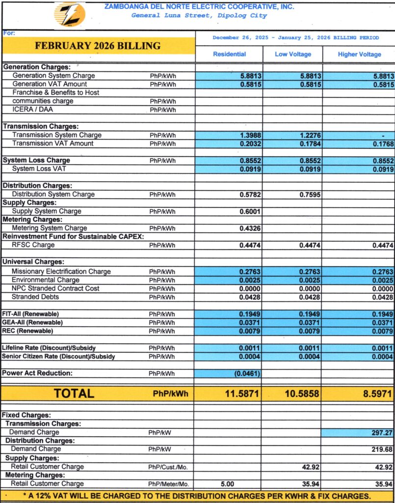 Power Rate and Unbundled Rate Update for February 2026