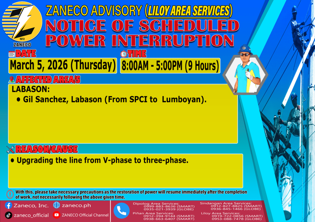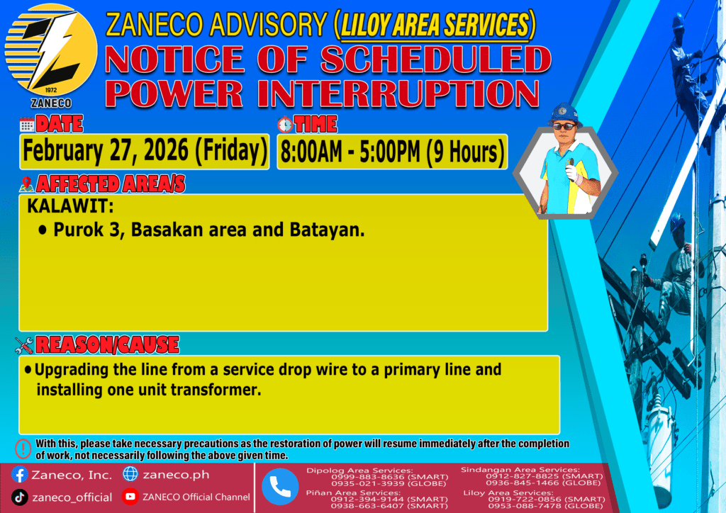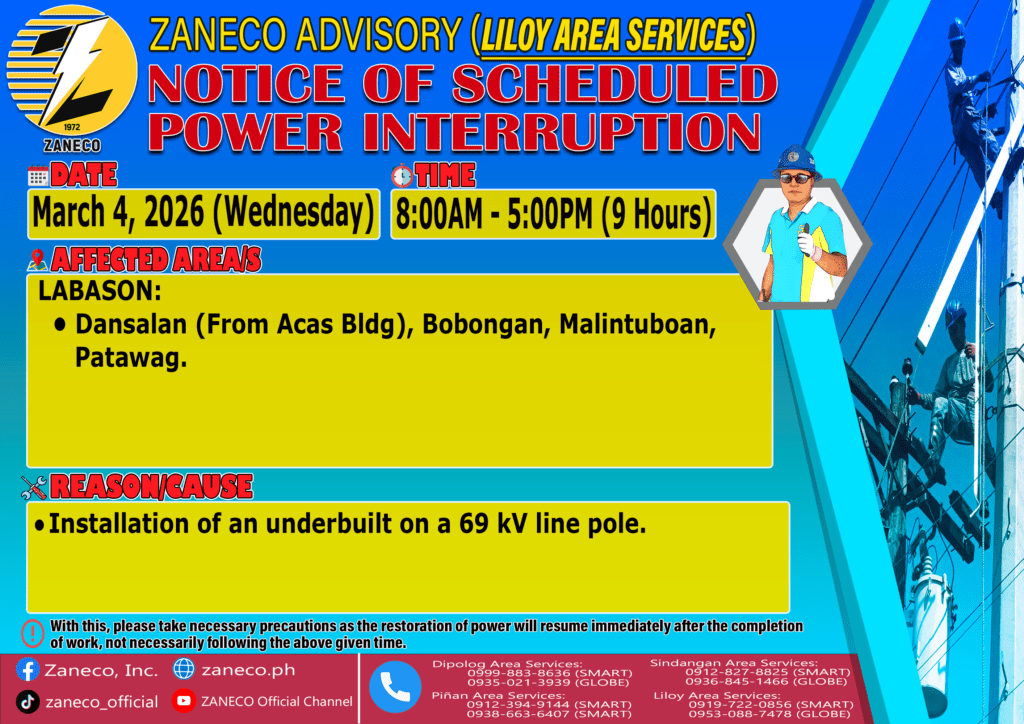 Notice of Scheduled Power Interruption LAS – February 27, March 4,5 & 6 2026.