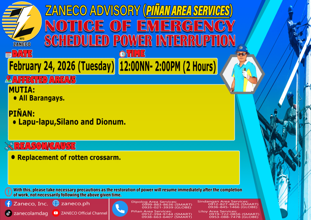 Notice of Emergency Scheduled Power Interruption PAS – February 24, 2026.