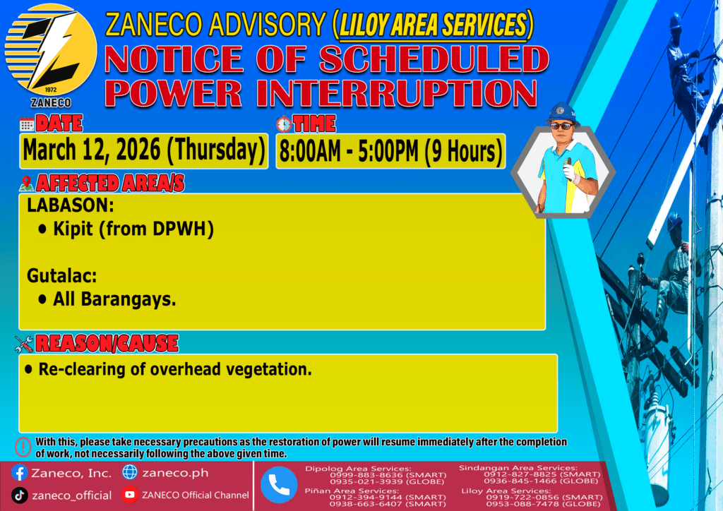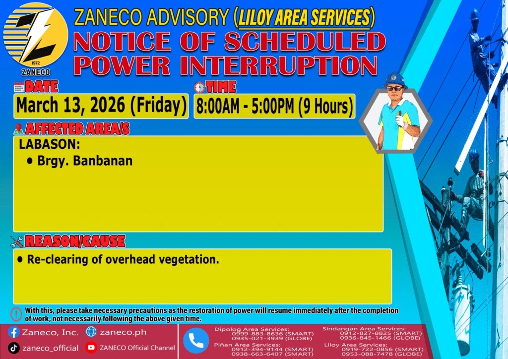 Notice of Scheduled Power Interruption LAS – March 11,12 & 13 2026.