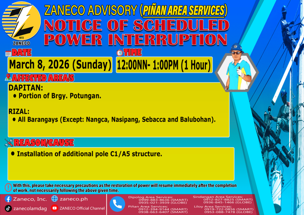 Notice of Scheduled Power Interruption LAS – March 8, 2026.
