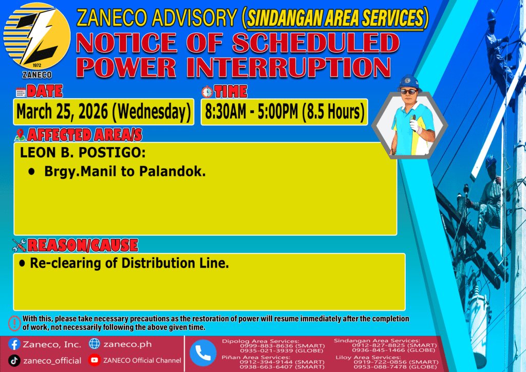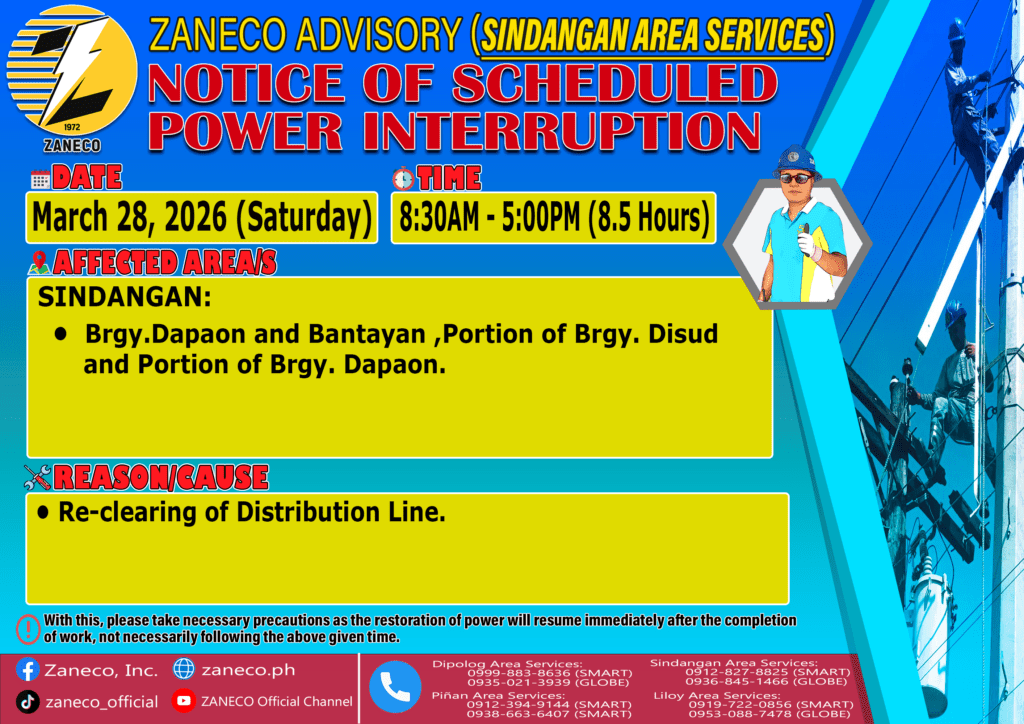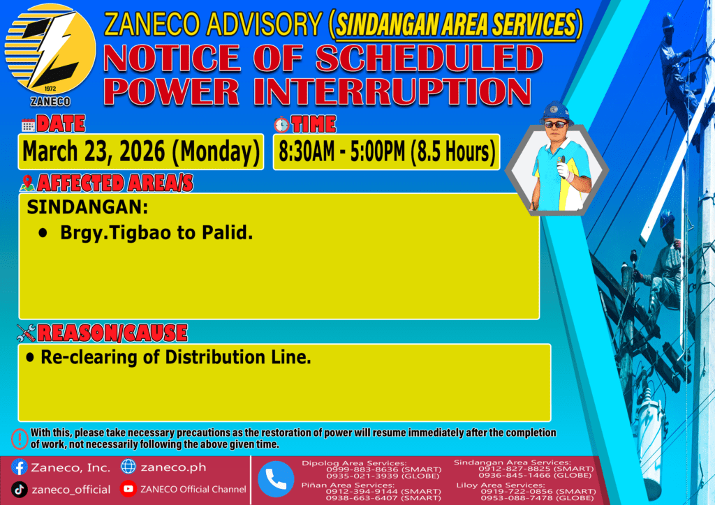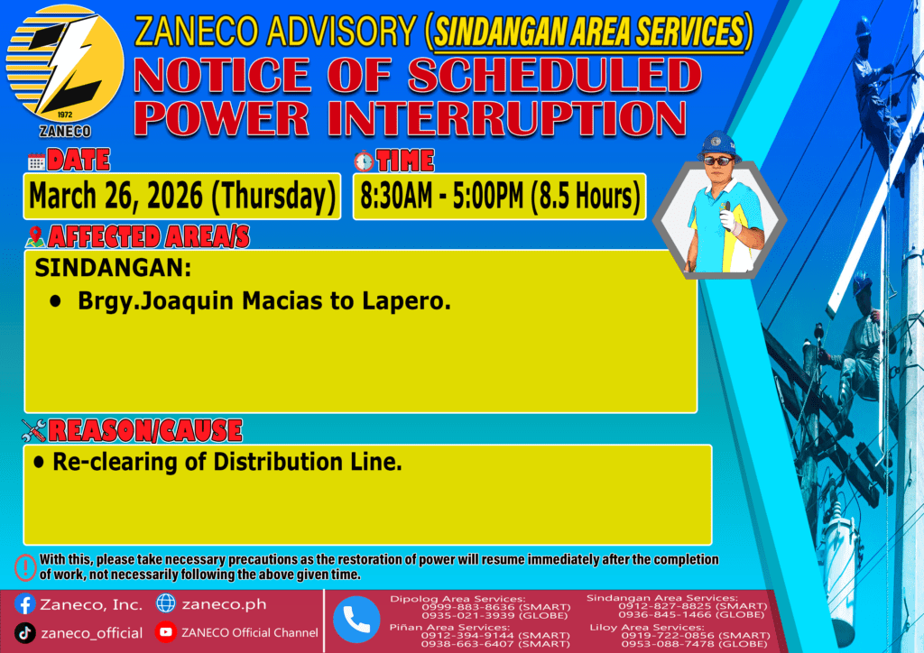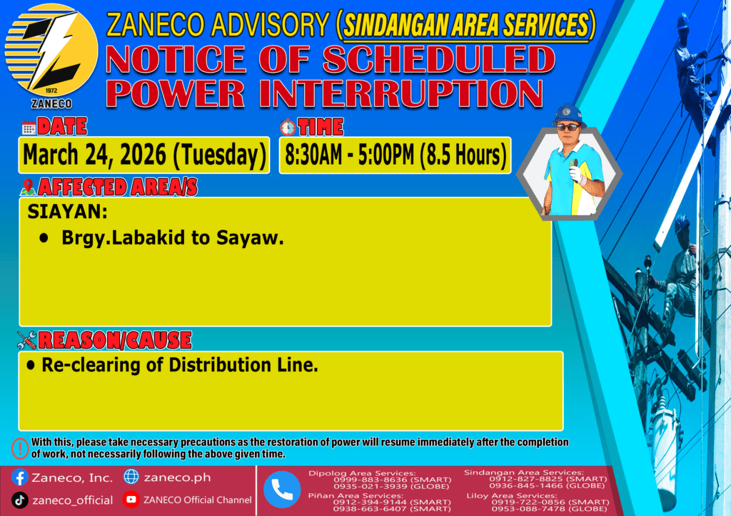 Notice of Scheduled Power Interruption SAS – March 23, 24, 25, 26, 27 & 28, 2026. March 19, 2026 by roiden candia
