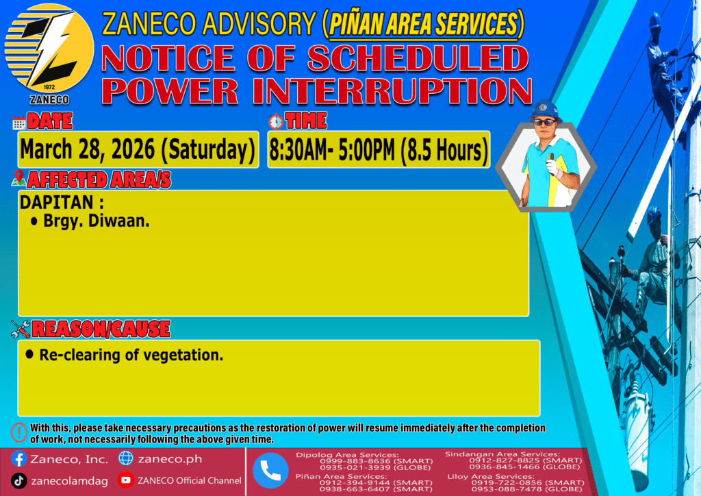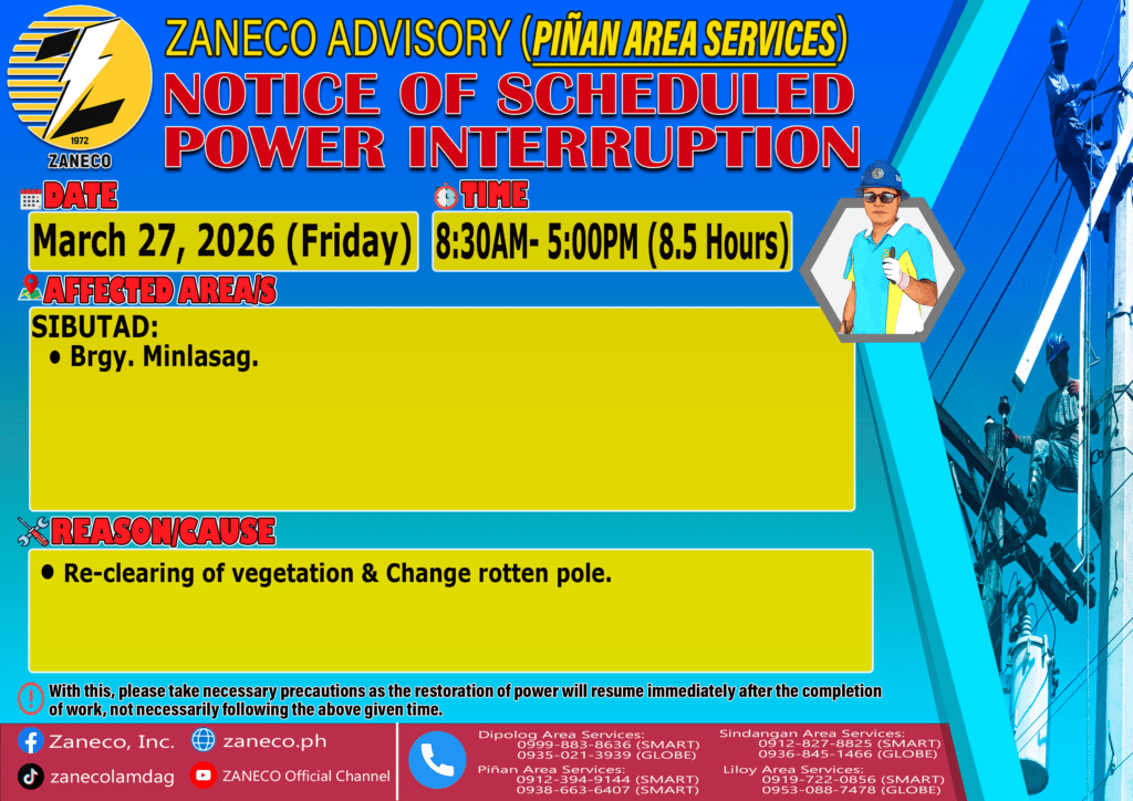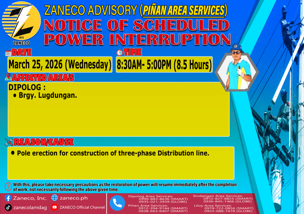 Notice of Scheduled Power Interruption PAS – March 25, 27 & 28, 2026. March 23, 2026 by roiden candia