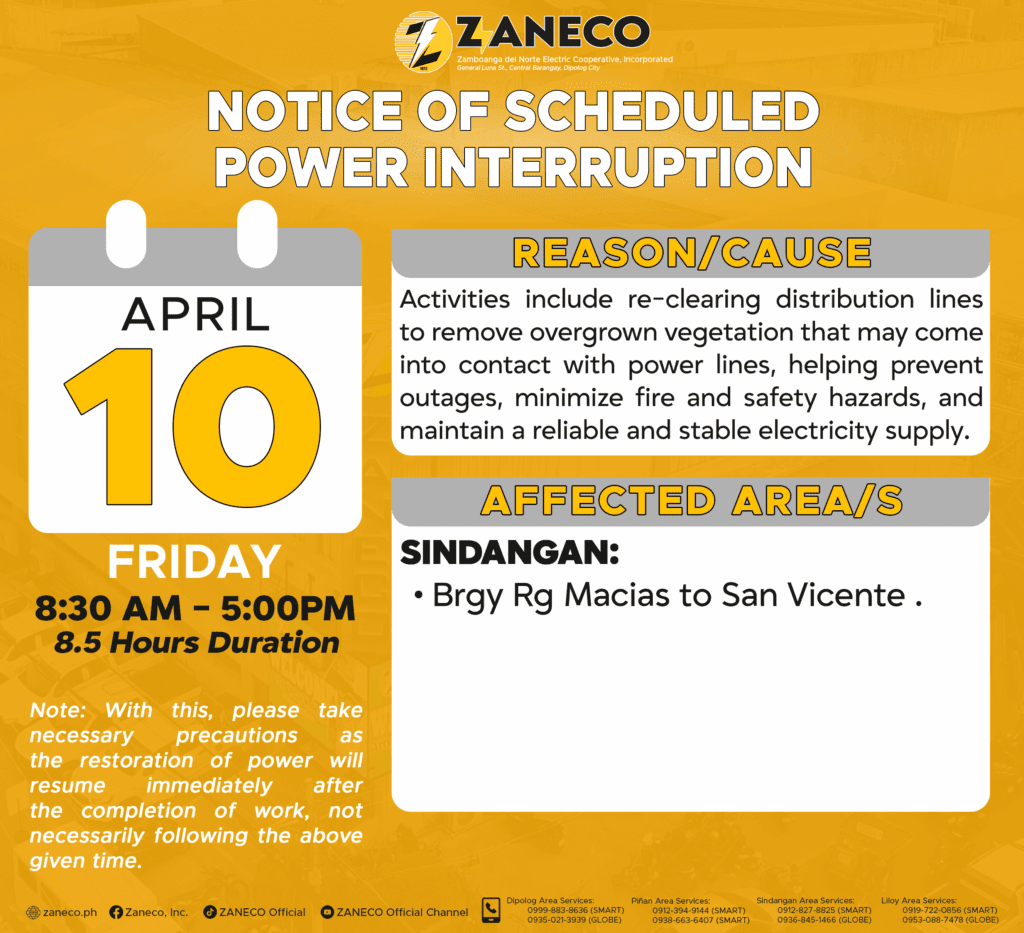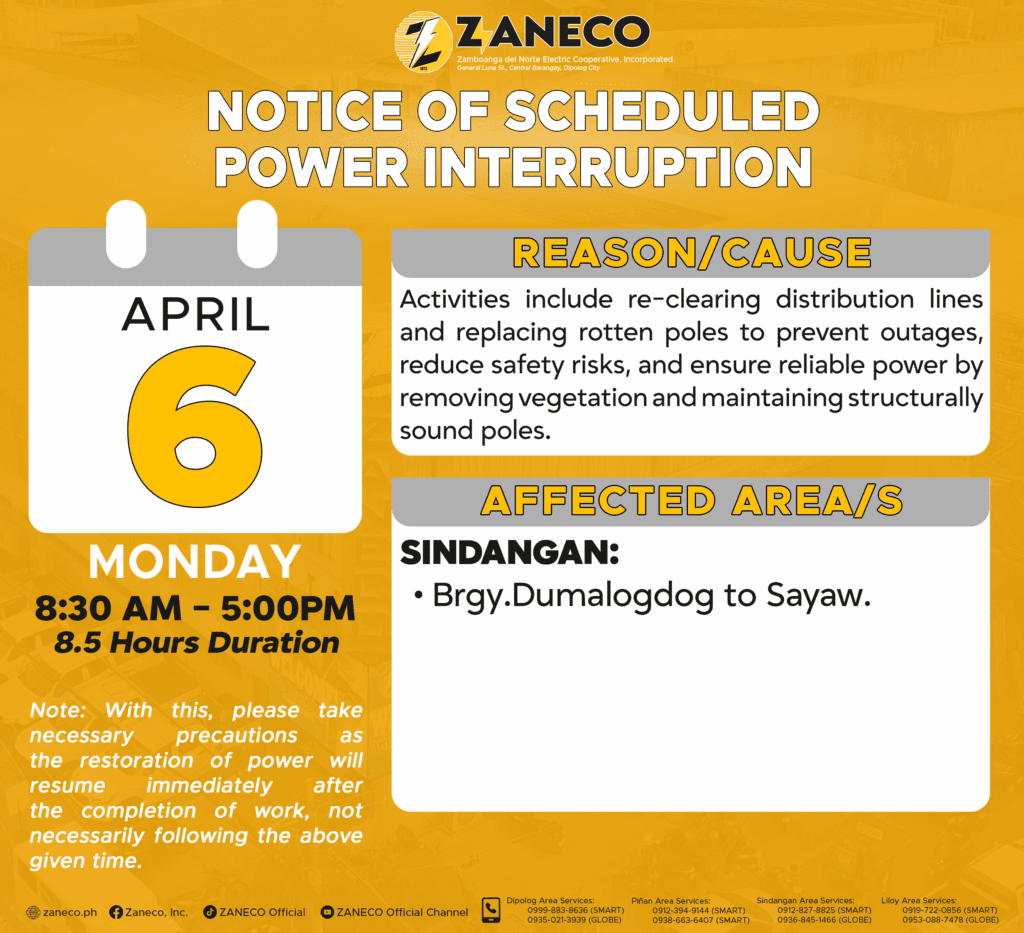 Notice of Scheduled Power Interruption SAS – April 6, 7, 8, 10 & 11 2026.