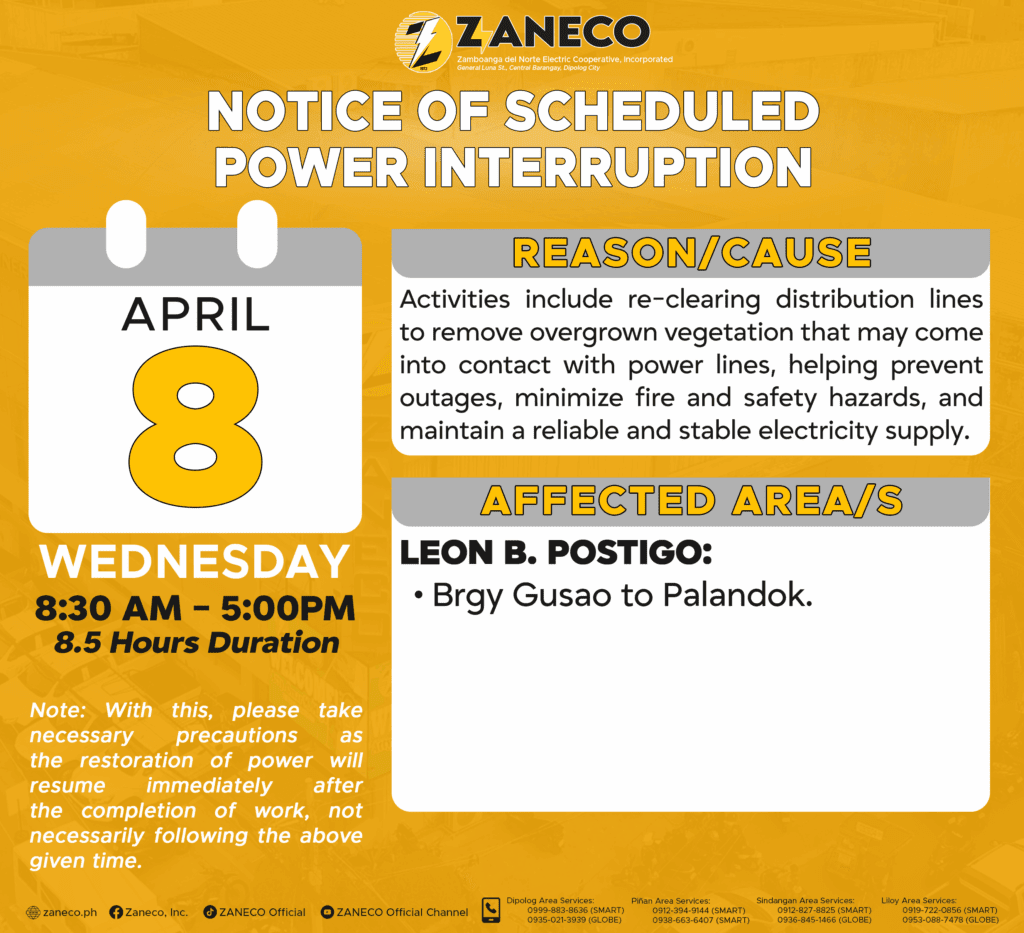 Notice of Scheduled Power Interruption LAS – April 1, 2026.