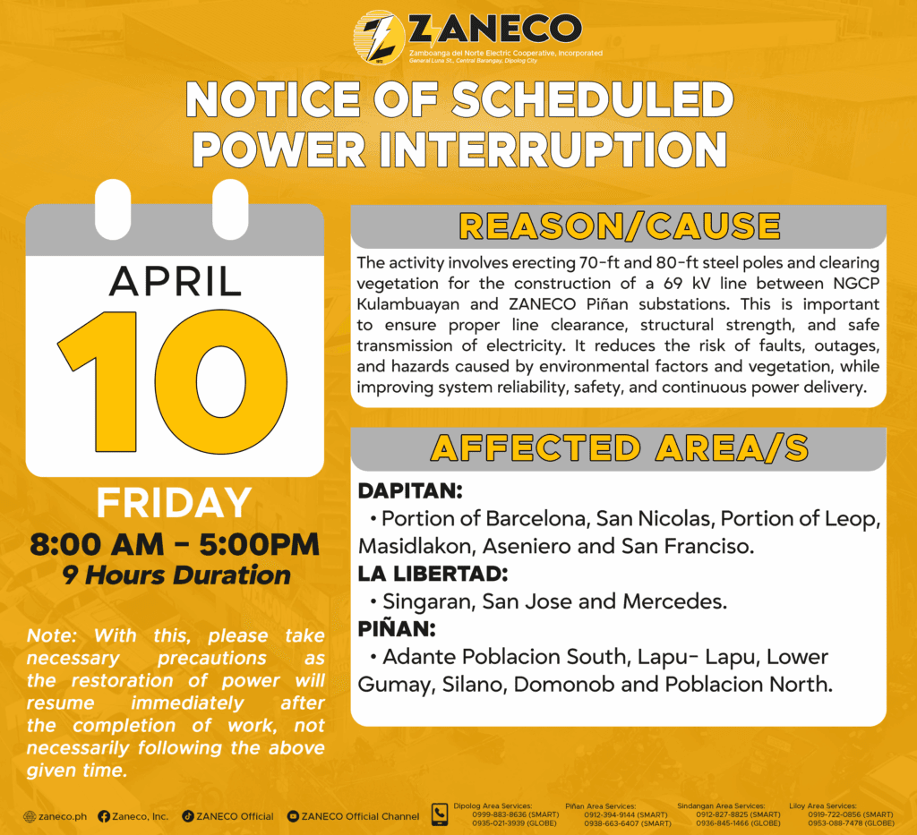 Notice of Scheduled Power Interruption TSD – April 10, 2026.