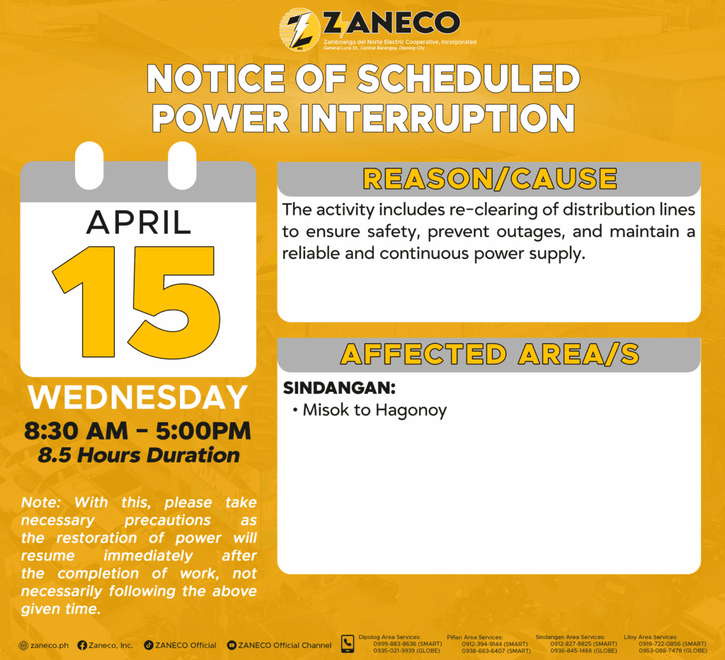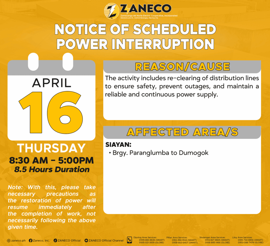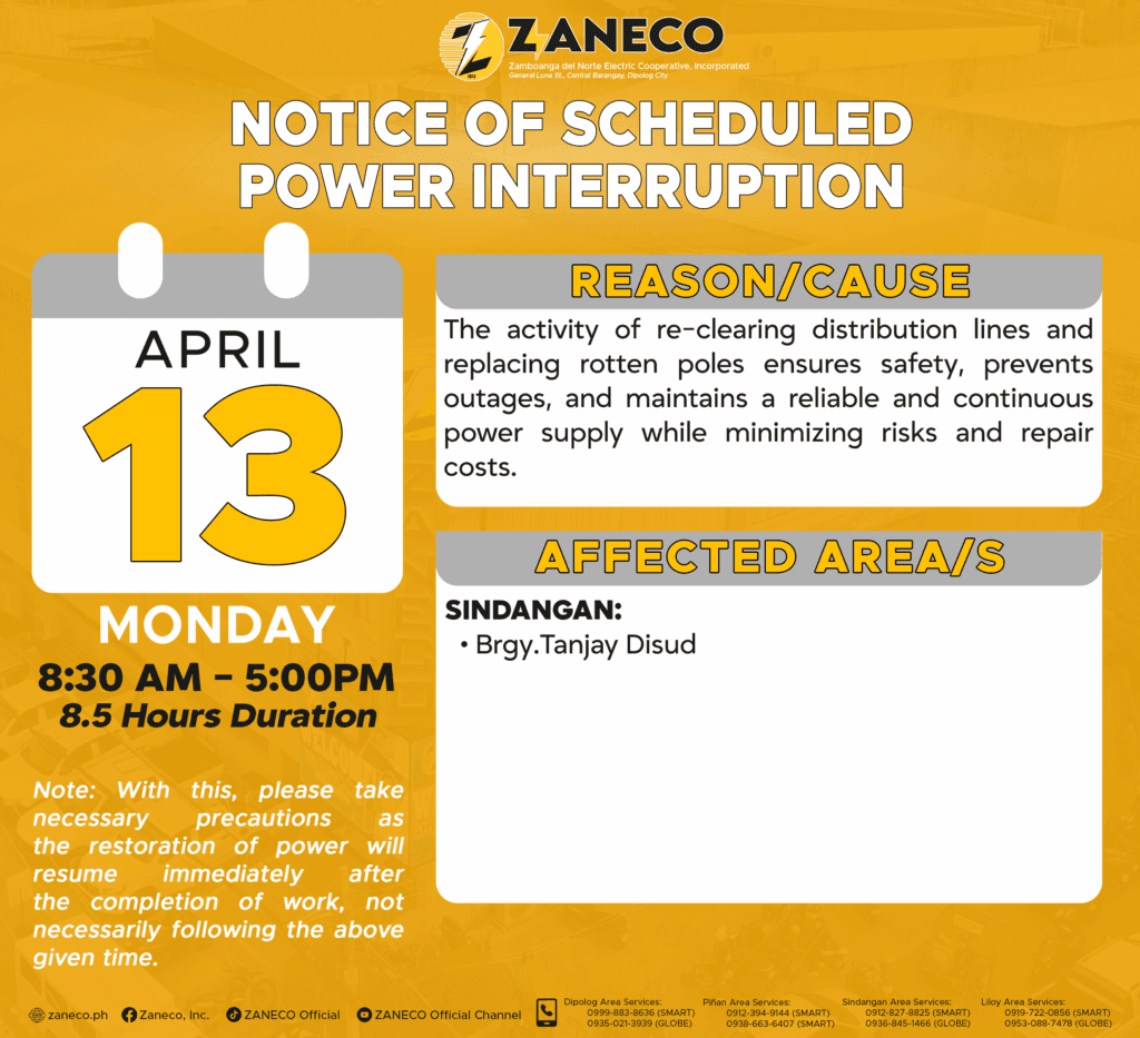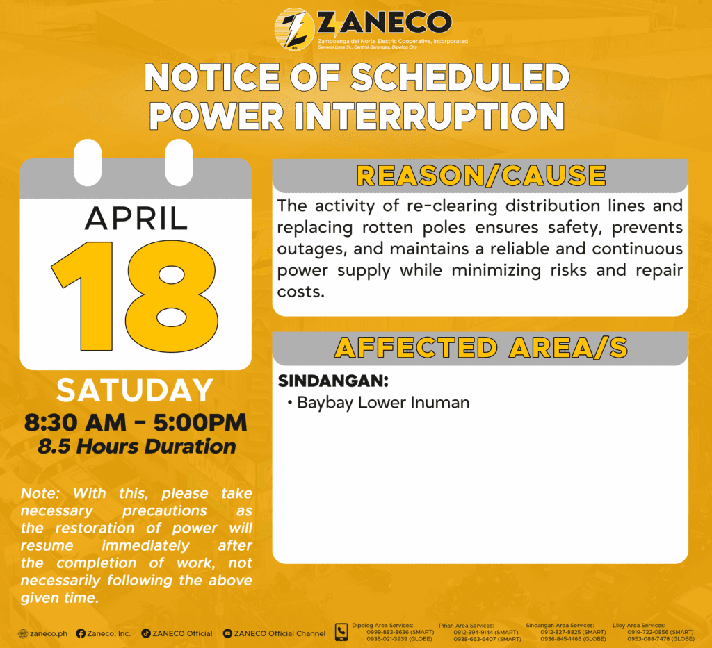 Notice of Scheduled Power Interruption LAS – April 13, 14, 15, 16, 17 & 18 2026. April 8, 2026 by roiden candia