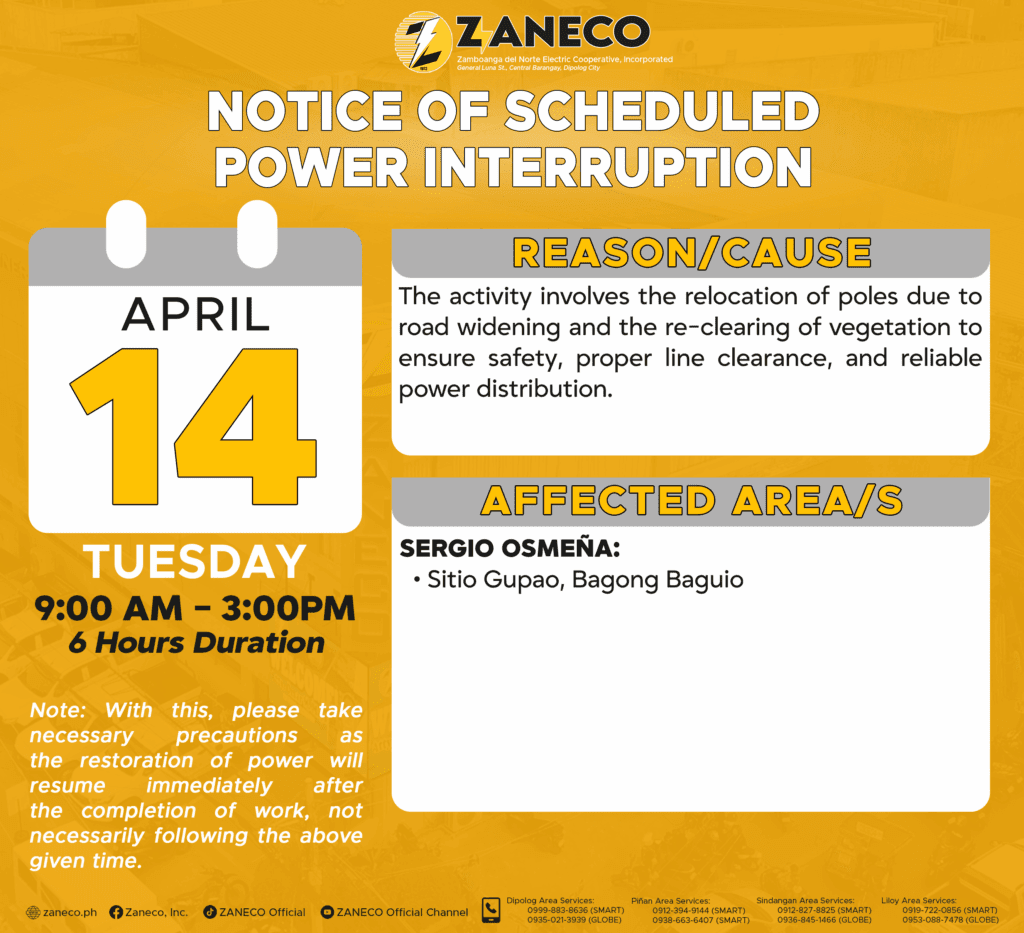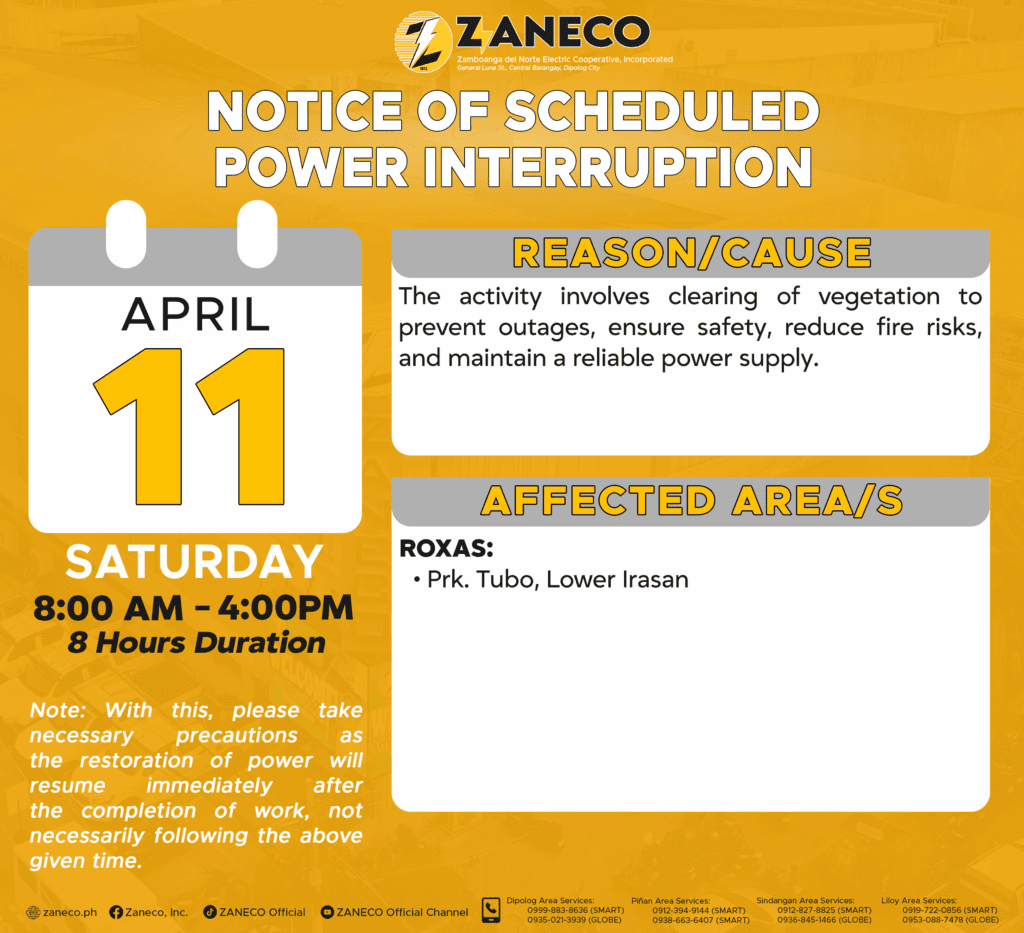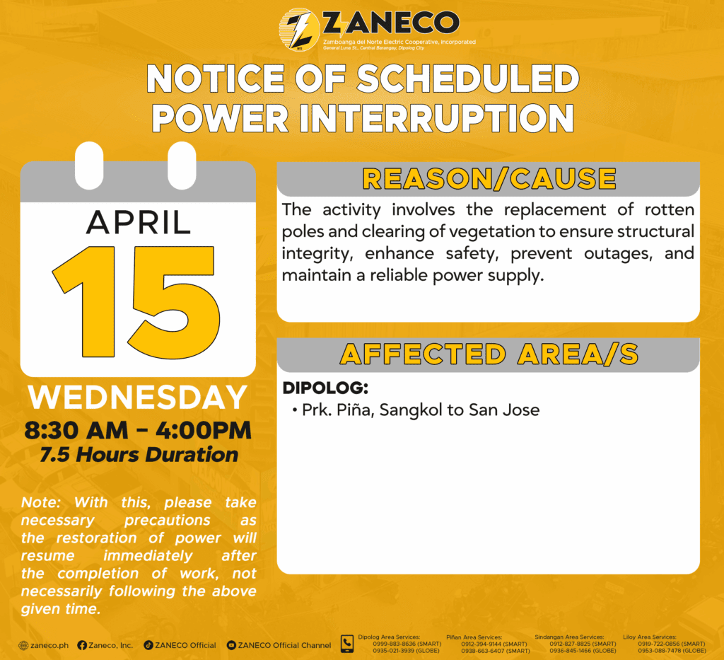 Notice of Scheduled Power Interruption DAS – April 11,14 & 15, 2026.