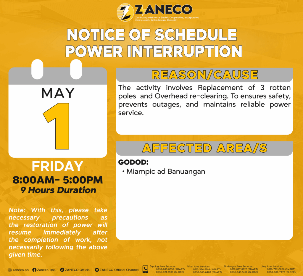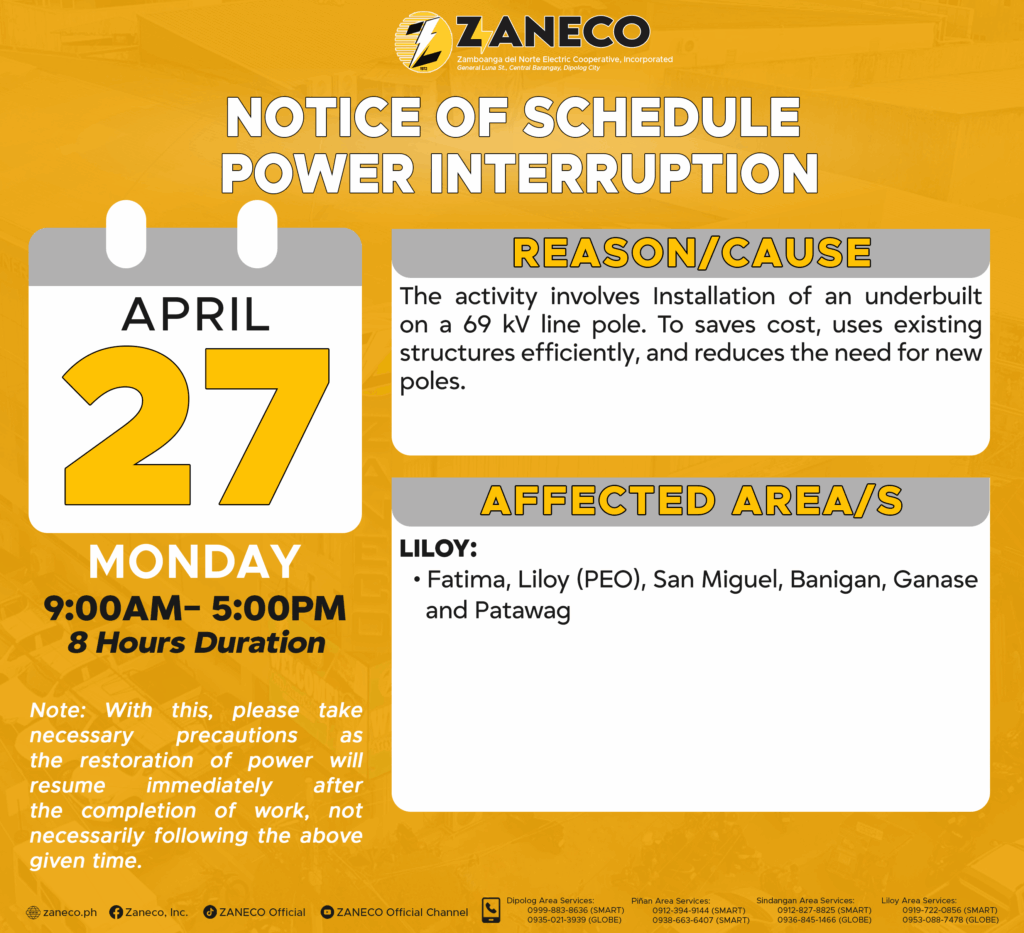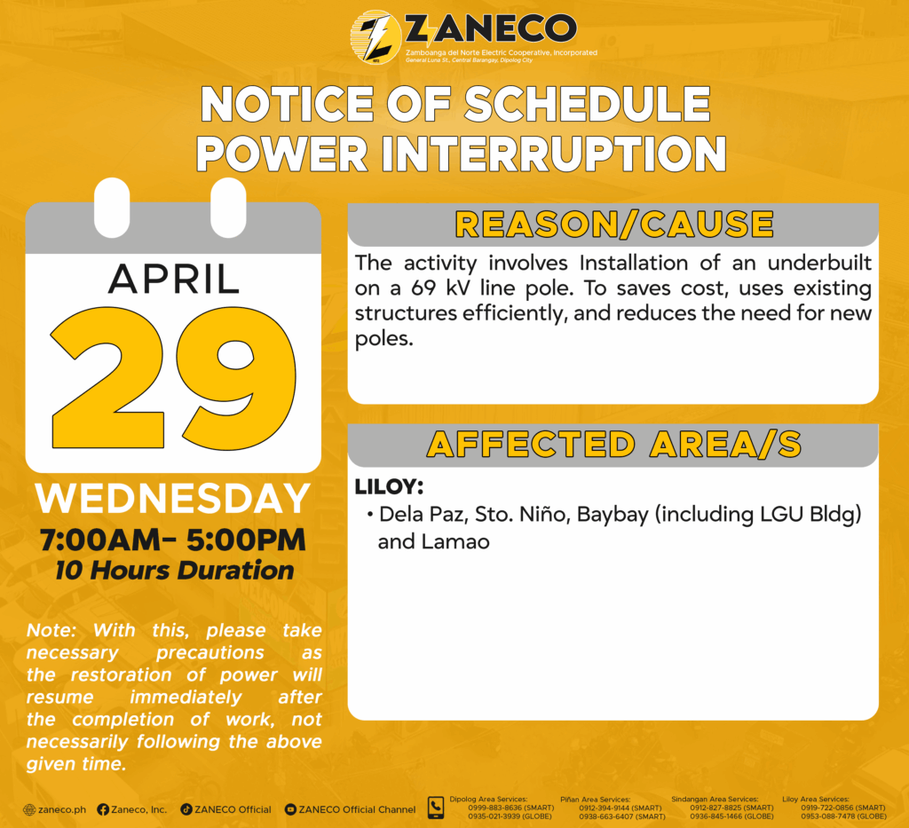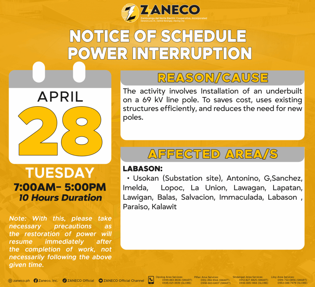 Notice of Schedule Power Interruption LAS – April 24, 27, 28, 29, 30 and May 1, 2026. April 27, 2026 by roiden candia