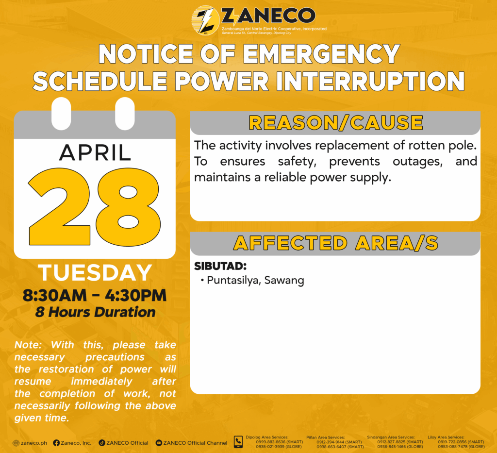 Notice of Schedule Power Interruption PAS – April 28 & 30 , 2026.