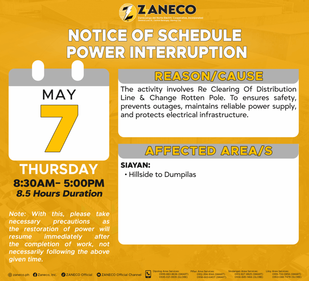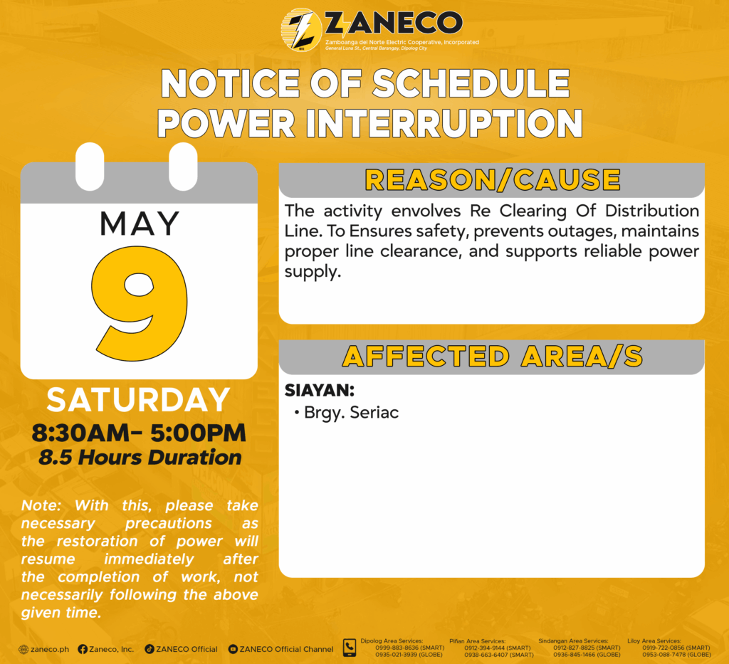 Notice of Schedule Power Interruption SAS – May 4, 5, 6, 7, 8 & 9, 2026. April 29, 2026 by roiden candia